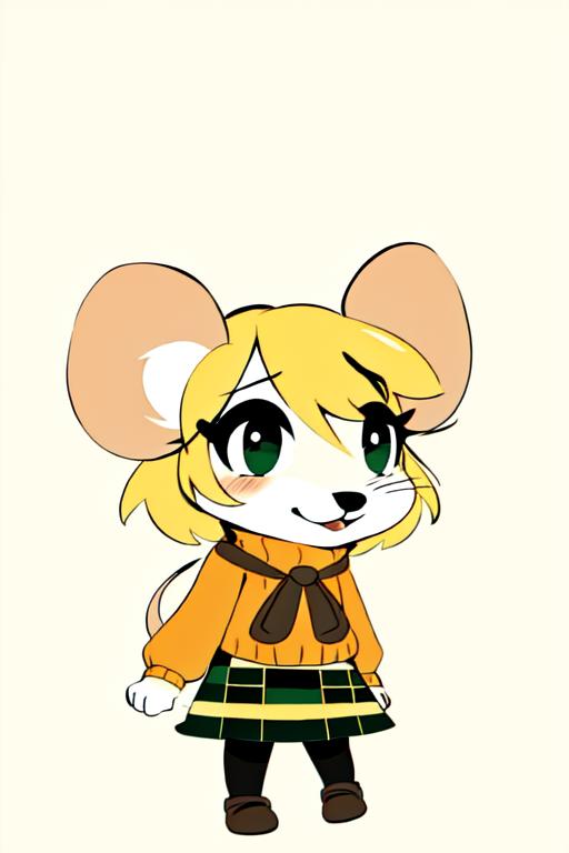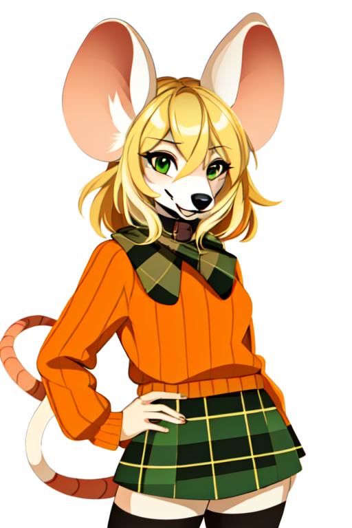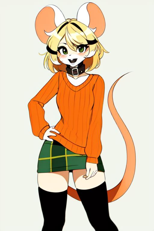 This is a basic Lora model of Mouse Ashley. Trained with around 30 images in different styles (most from the classic meme format, so sometimes might be able to create that style). To trigger use "moushley, mouse ashley, orange sweater, green plaid skirt, furry female, white mouse" Might generate a lot of white or empty background, but keep playing with the prompt weights to get better results.