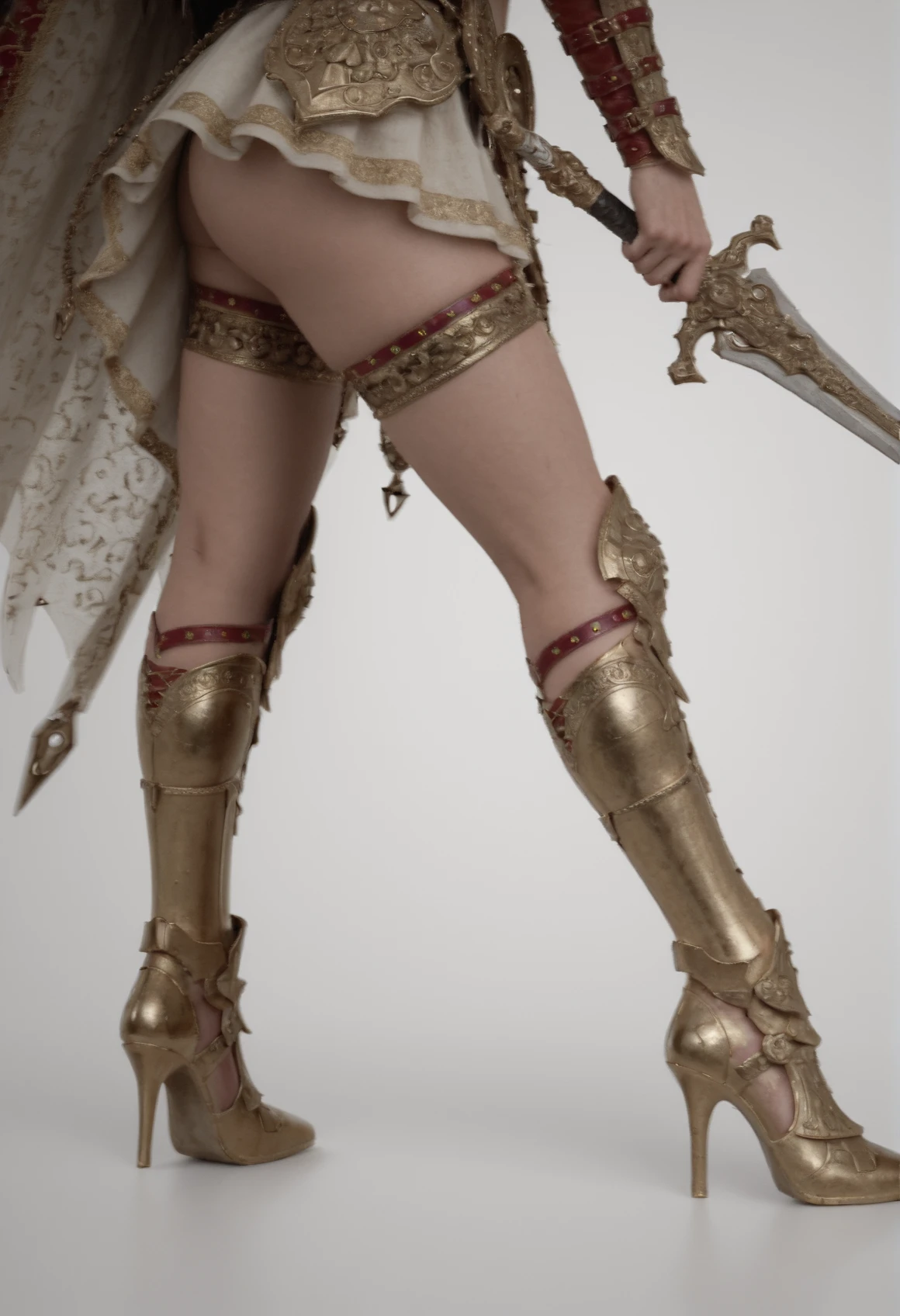 shieldmaiden_gold, ornate golden greaves with high heels, celtic knotwork detailing, tattered white skirt, exposed thighs, gold thigh straps, red leather accents, dynamic battle stance, hyperrealistic, Unreal Engine rendershieldmaiden_gold, ornate golden greaves with high heels, celtic knotwork detailing, tattered white skirt, exposed thighs, gold thigh straps, red leather accents, dynamic battle stance, hyperrealistic, Unreal Engine renderShieldmaiden Gold | Upper Body Shots [4]