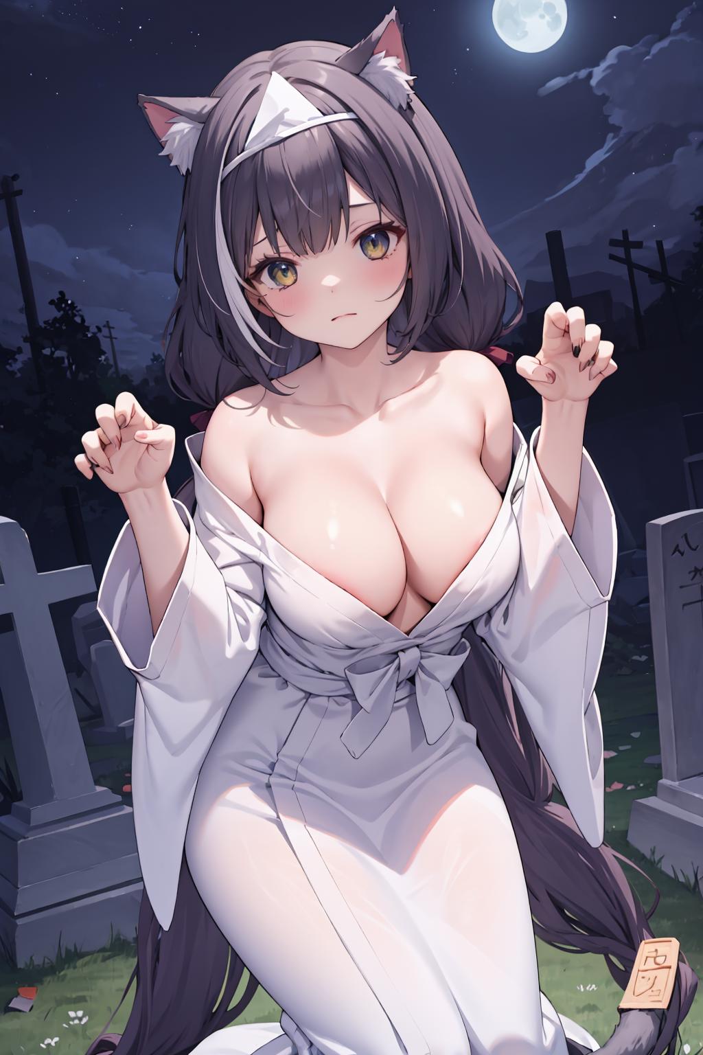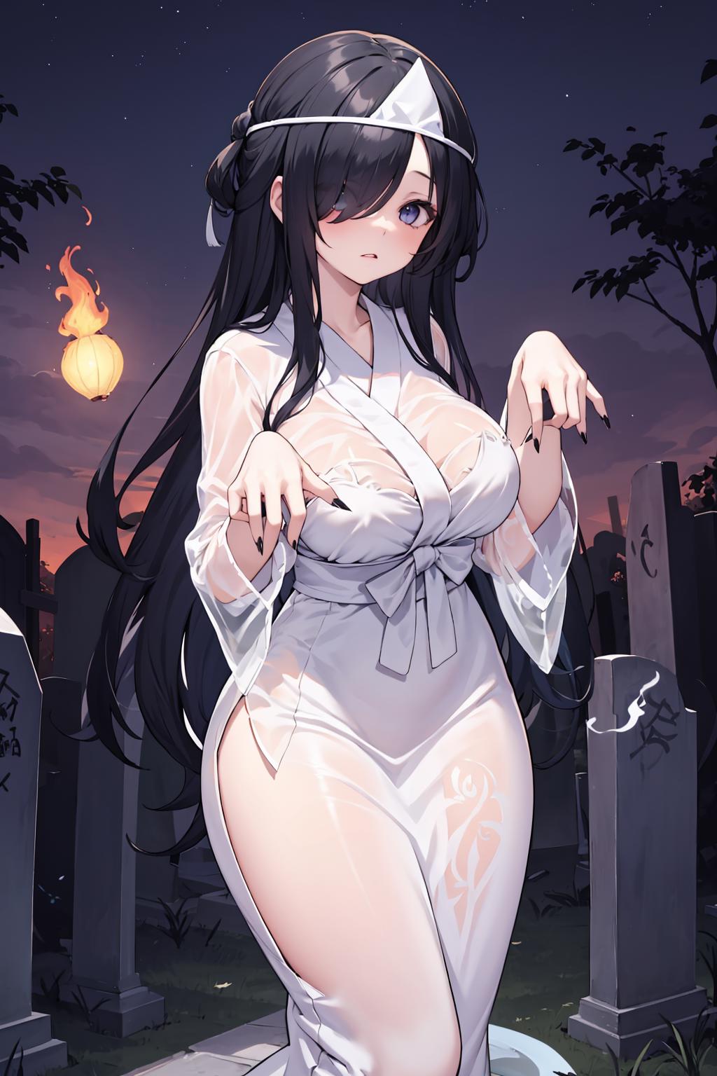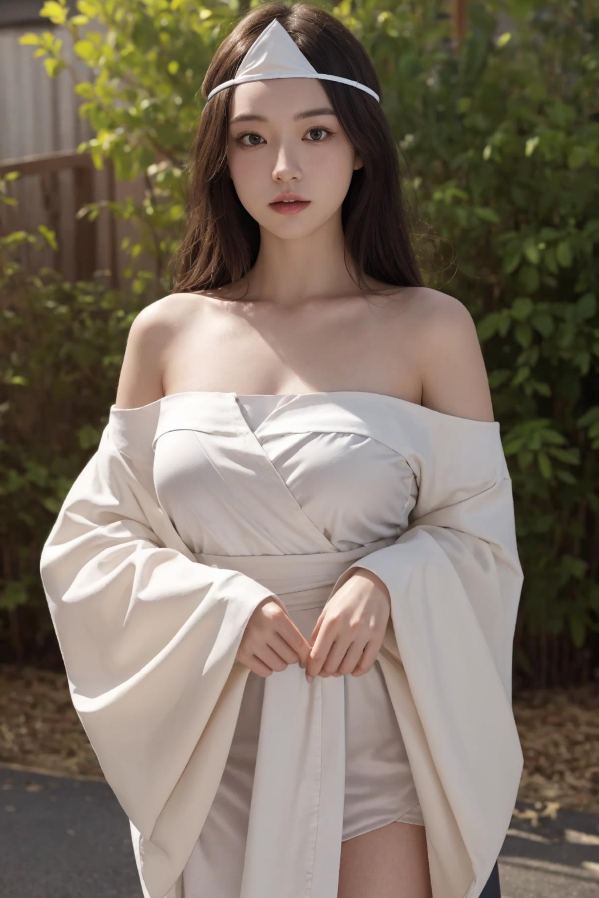 触发词: ghost costume, triangular headpiece, off shoulder