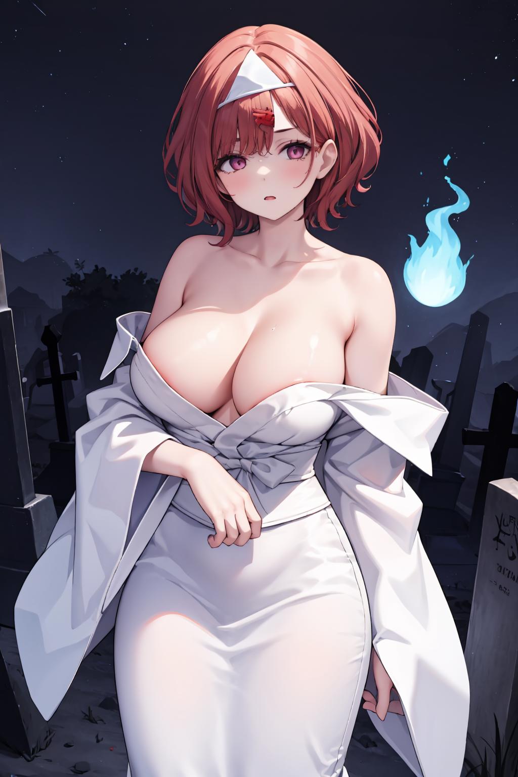 To be honest, "off shoulder" is not necessary. A japanese ghost costume should be a left-over-right kimono with a white obi. However most japanese clothes are right-over-left and have dark-colored obis. So "japanese clothes/kimono" will contaminate ghost costume. SD is not good at asymmetric features. The tag off shoulder solves the problem of "right-over-left or left-over-right" in a way and is quite sexy. Nice!(