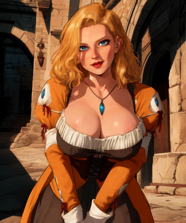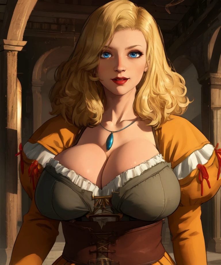 dress,cleavage,necklace, corset, long sleeves, skirt, - large breasts
