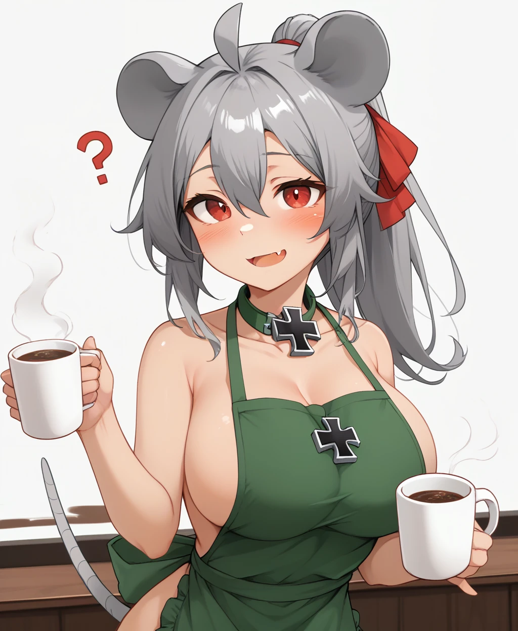 Base: WTM0US, red eyes, grey hair, long hair, ahoge, ponytail, mouse ears, mouse tail, mouse girl,