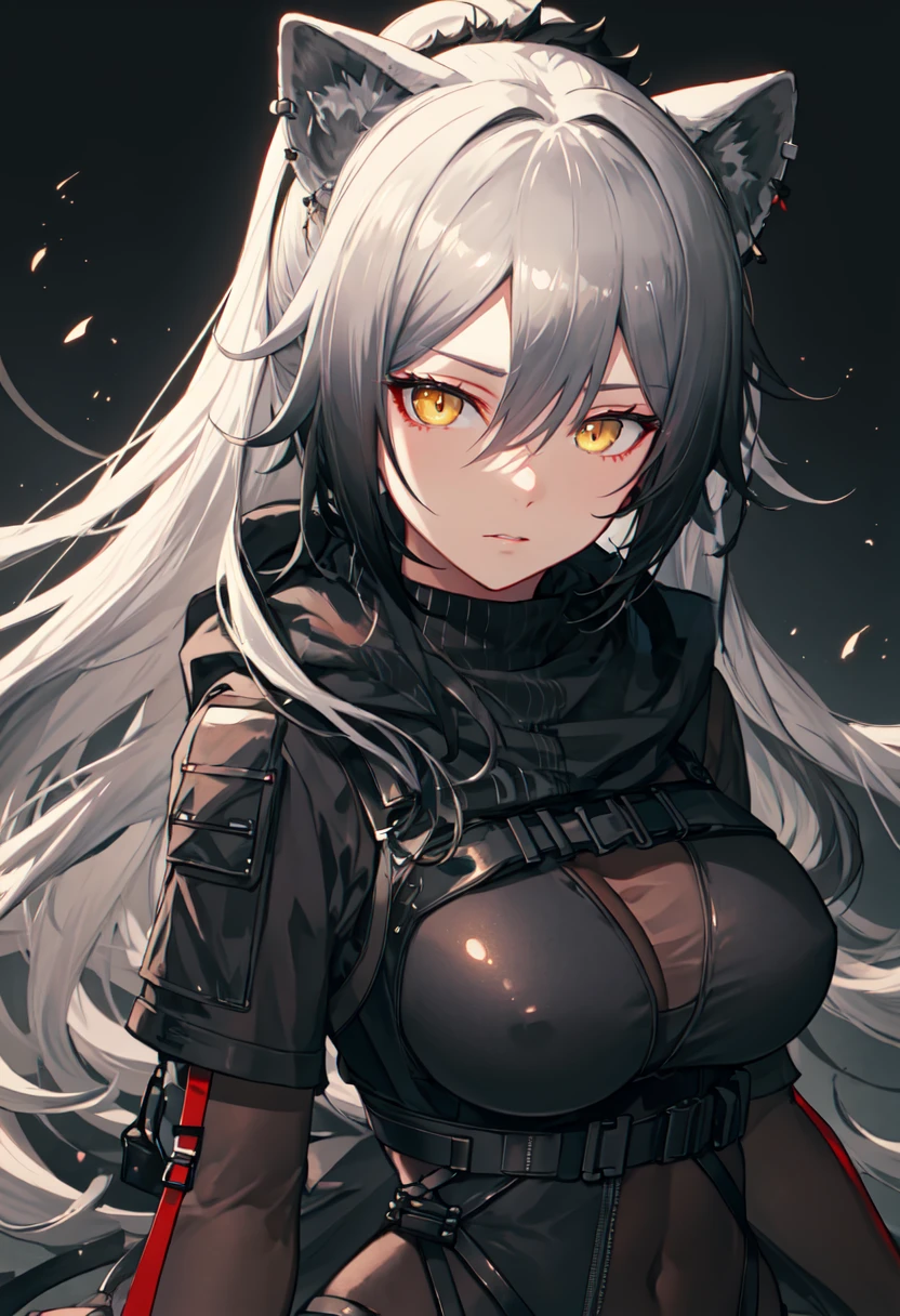 - The pruned character tags are animal ears, grey hair, cat ears, long hair, yellow eyes, breasts, ponytail, large breasts, tail, hair between eyes, cat tail, very long hair. You can add them into prompts when core features (e.g. hair color) of character is not so stable.