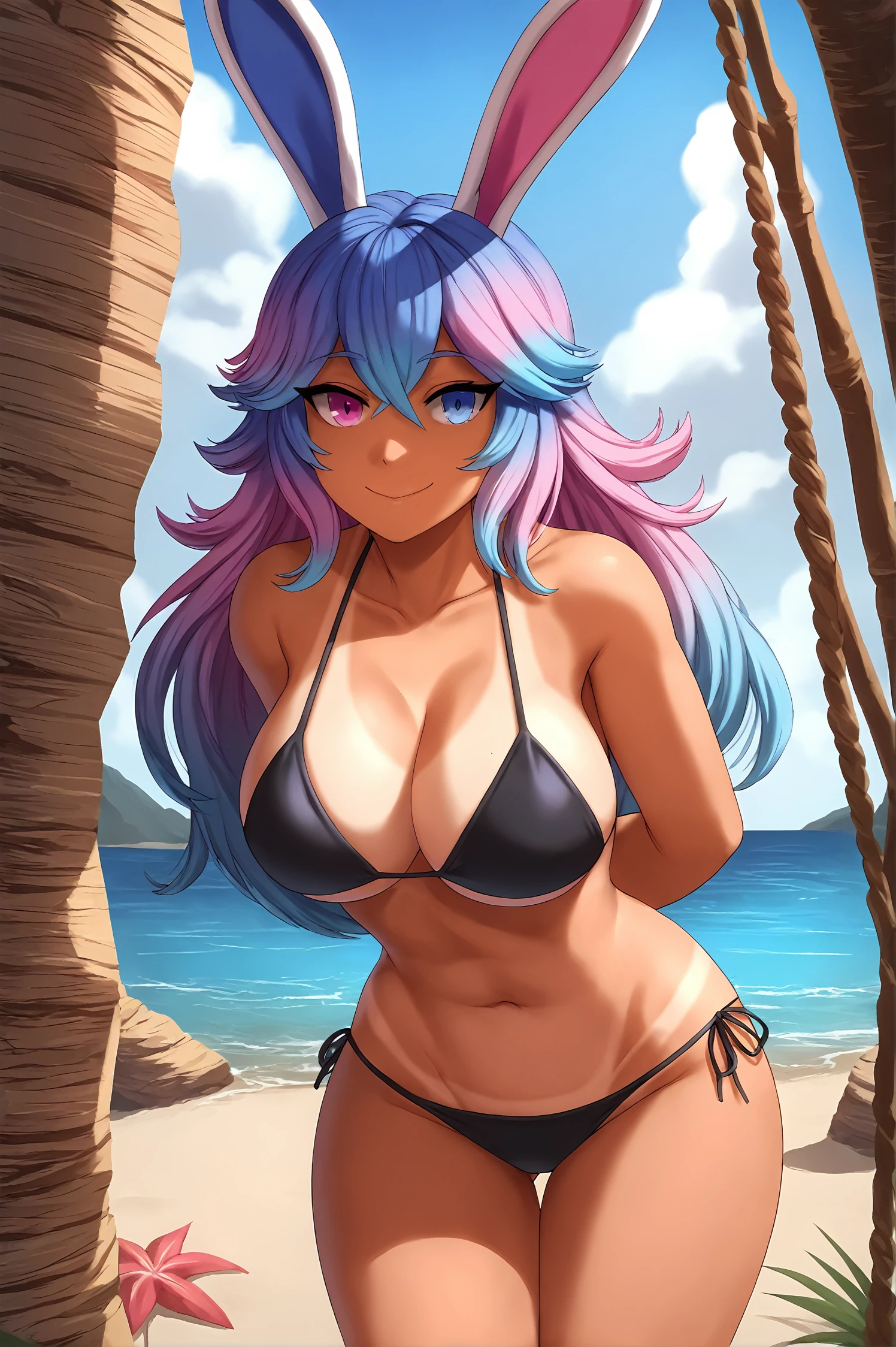 Simply had to make a LoRA of everyones favorite scuffed, 6'9" tall, dommy-mommy bunny girl. It has some issues, especially in getting the hair right, but that is mostly because every artist draws her hair different, so the dataset is pretty inconsistent. Other than that, it also mixes up the sides of her blue/pink eye and blue/pink ear, but that's just SD struggling with such concepts in general.
