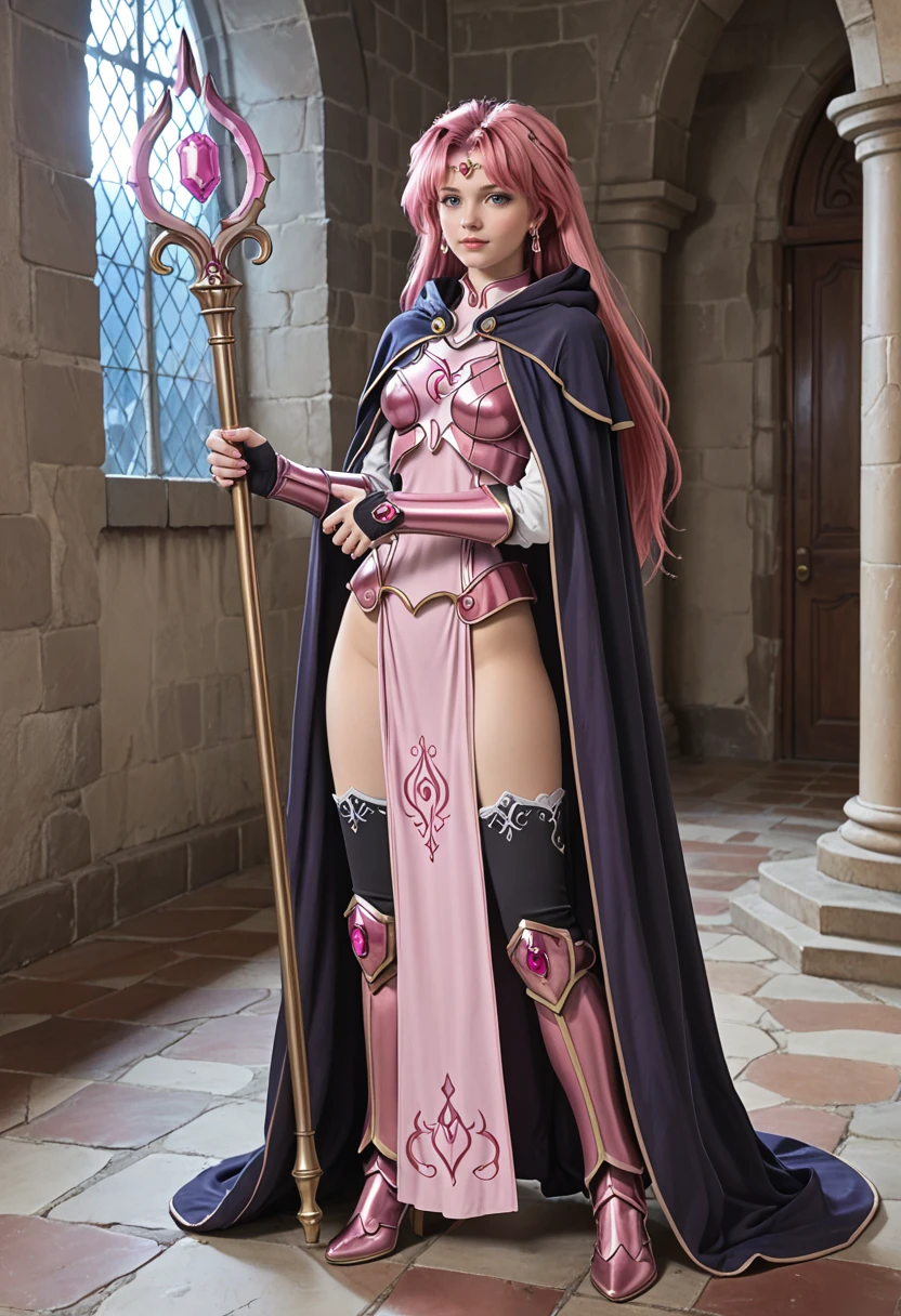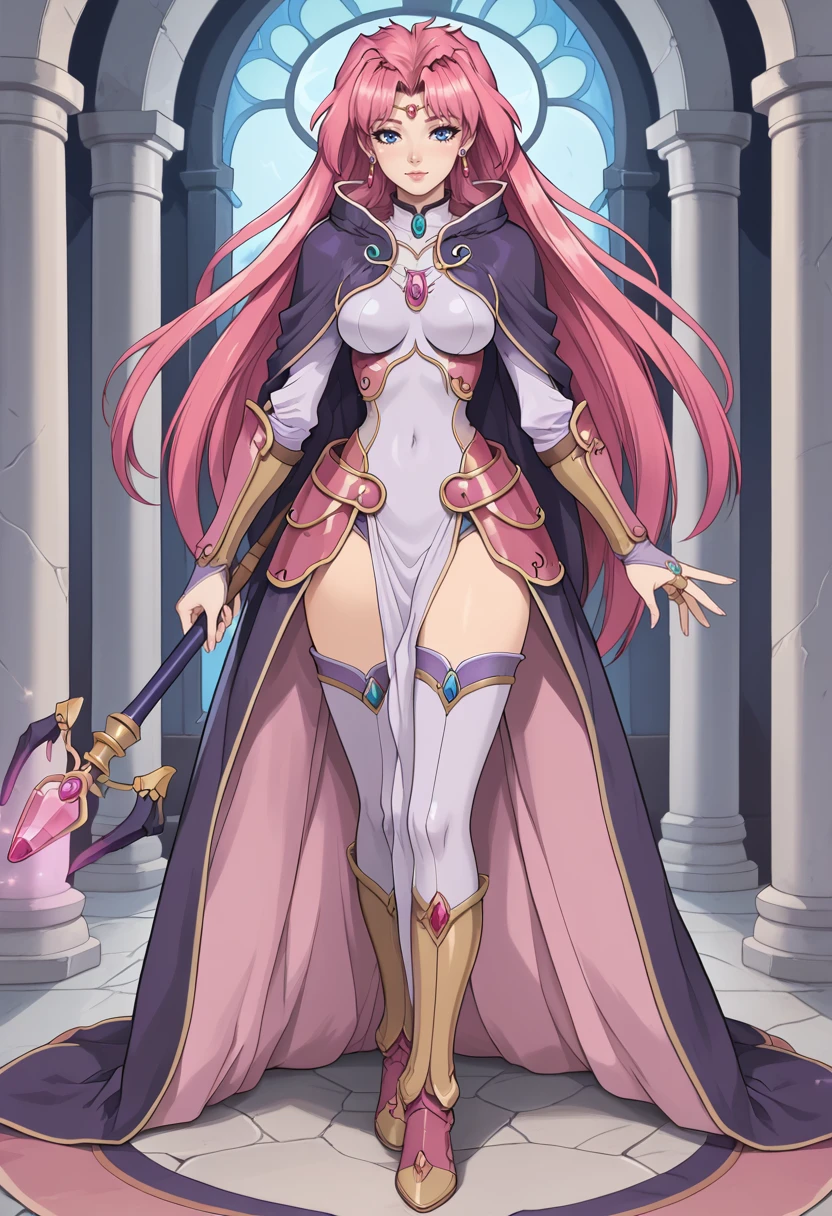 bridal gauntlets, circlet, cloak, earrings, mage armor, sorceress, thighhighs