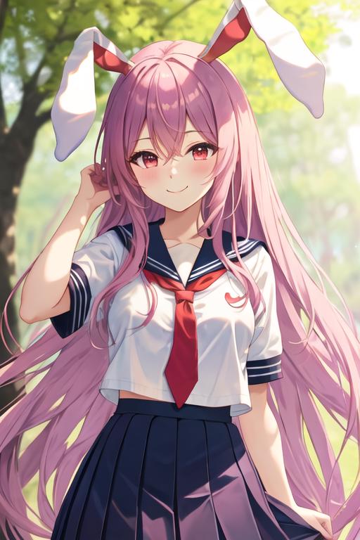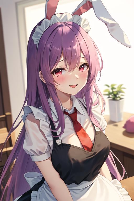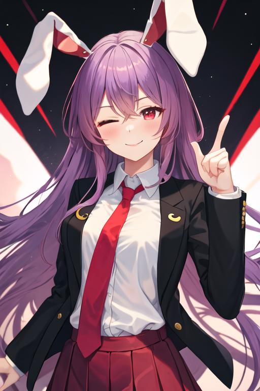 The trigger word is reisen_udongein_inaba_touhou, and the recommended tags are best quality, masterpiece, highres, solo, {reisen_udongein_inaba_touhou:1.15}, animal_ears, long_hair, rabbit_ears, red_eyes, purple_hair, necktie, red_necktie, bangs, blush, very_long_hair, breasts, smile, hair_between_eyes.