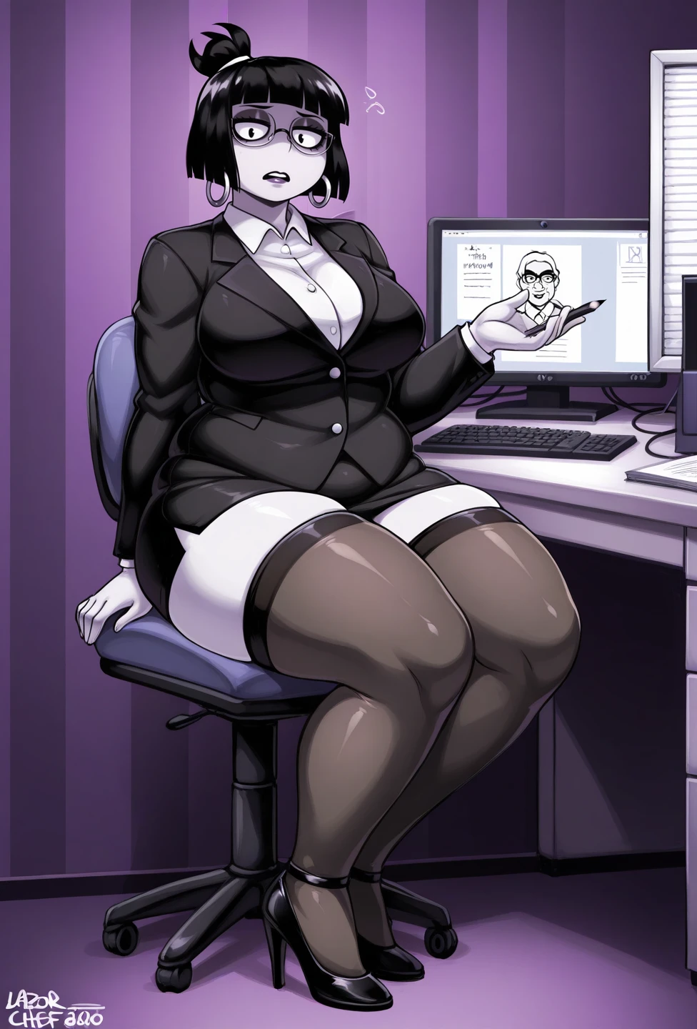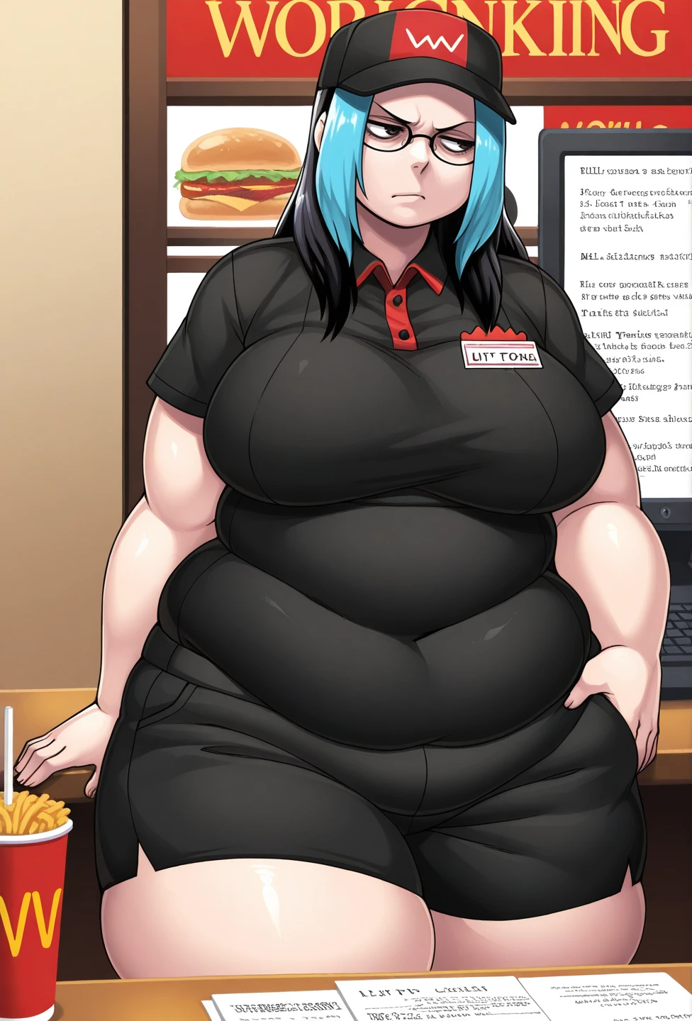 The keyword are 'lazorchef, bbw, plump, chubby, chubby female, huge breasts, thick thighs,' but you can use specific characters like :