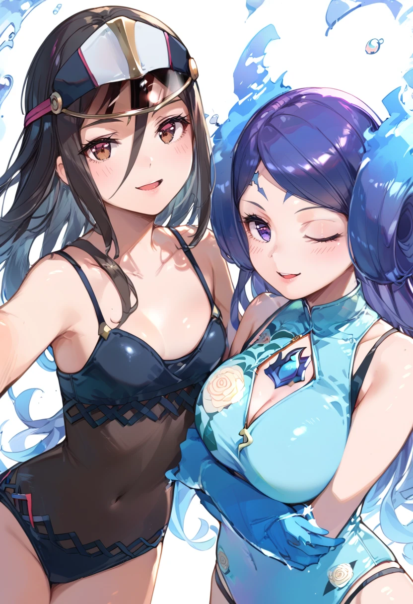 Tags (others, both): chibi, 3d, game style, dual wielding, yuri,