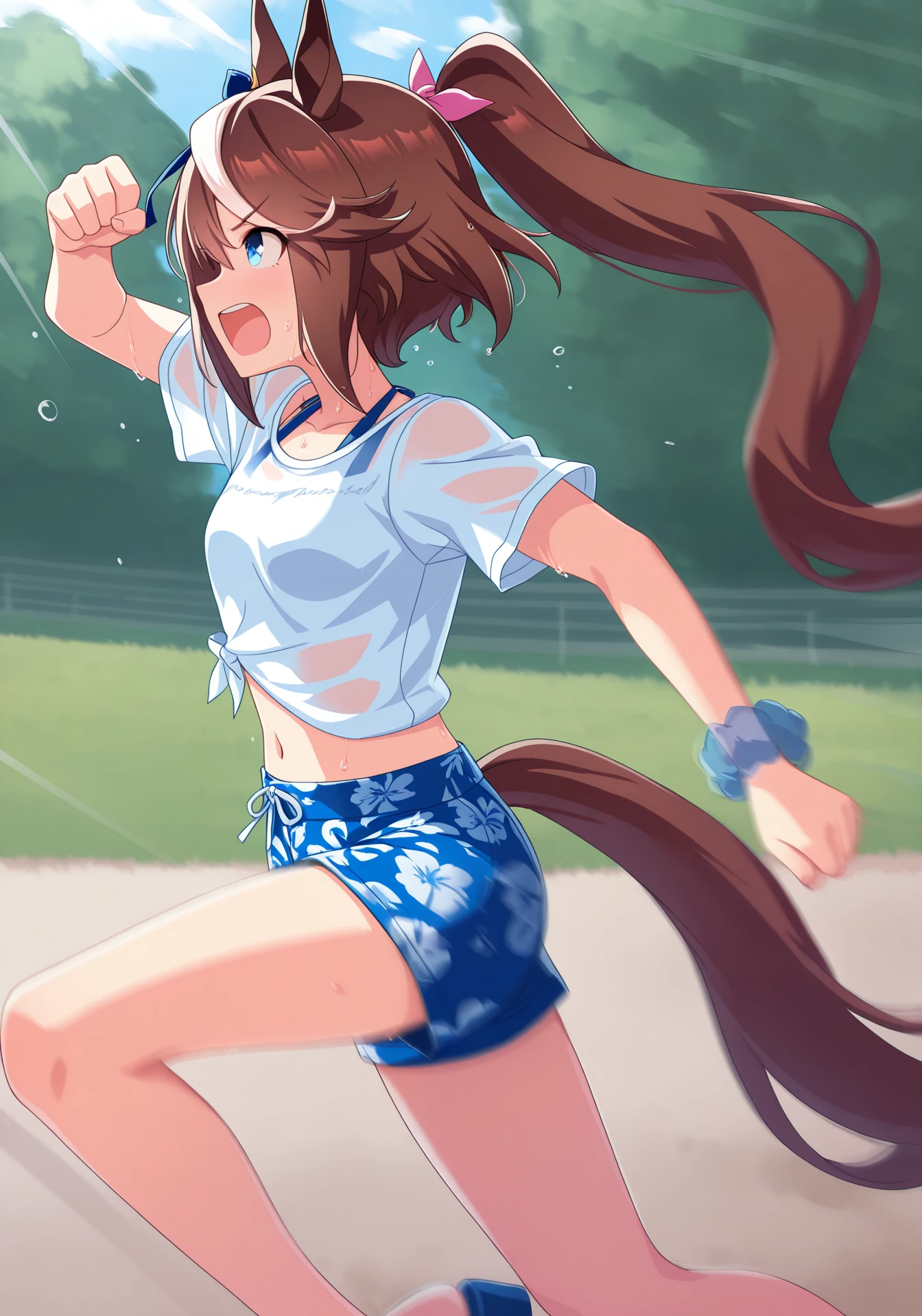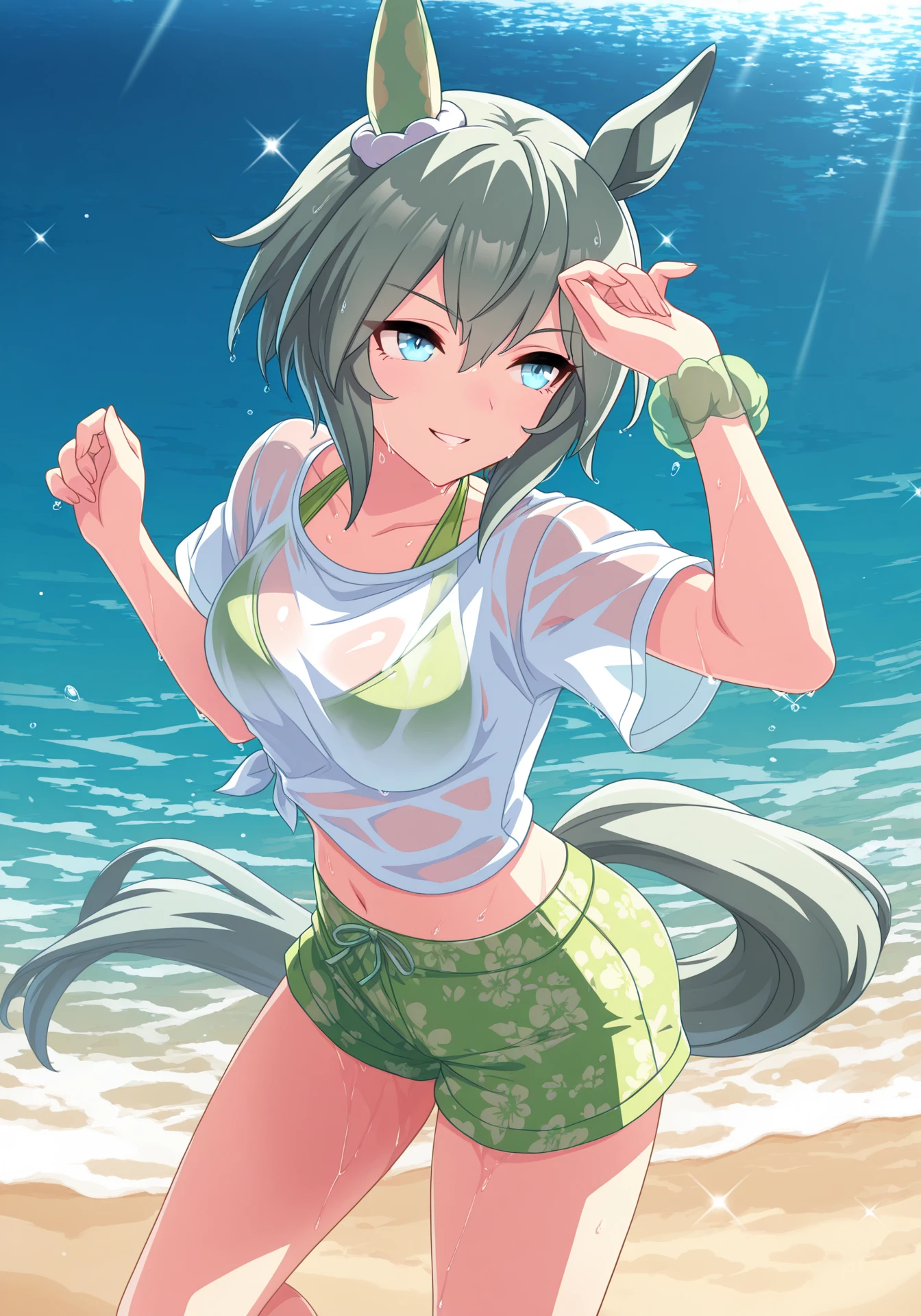 optional: horse girl, horse ears, horse tail, wet clothes, see-through clothes