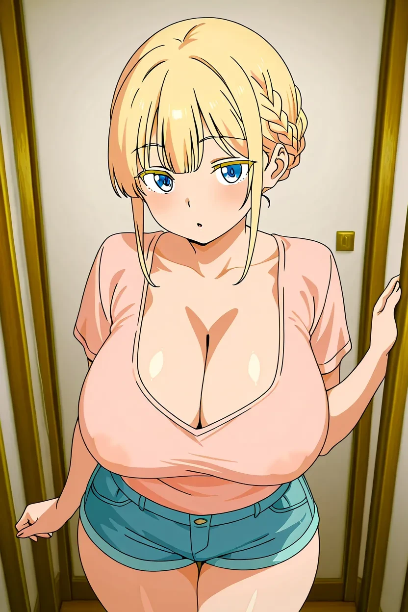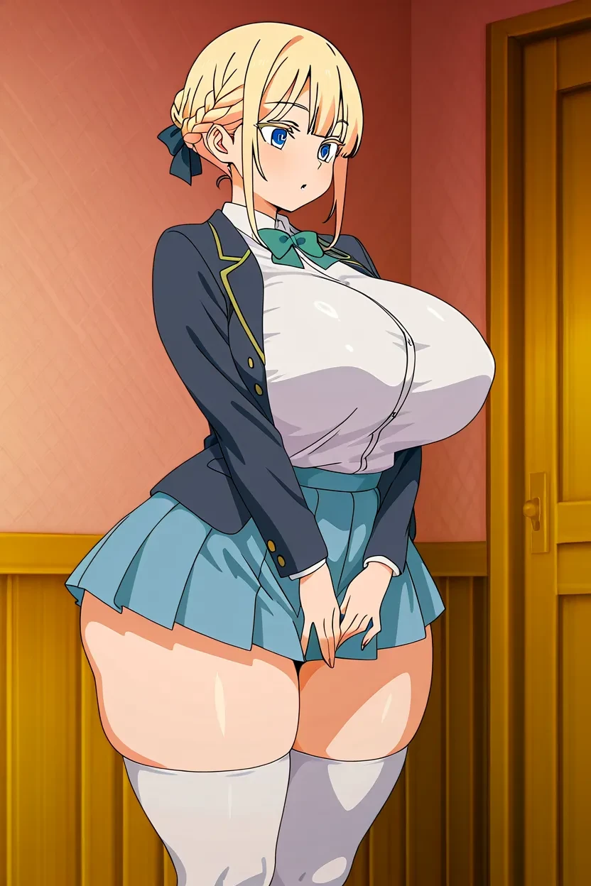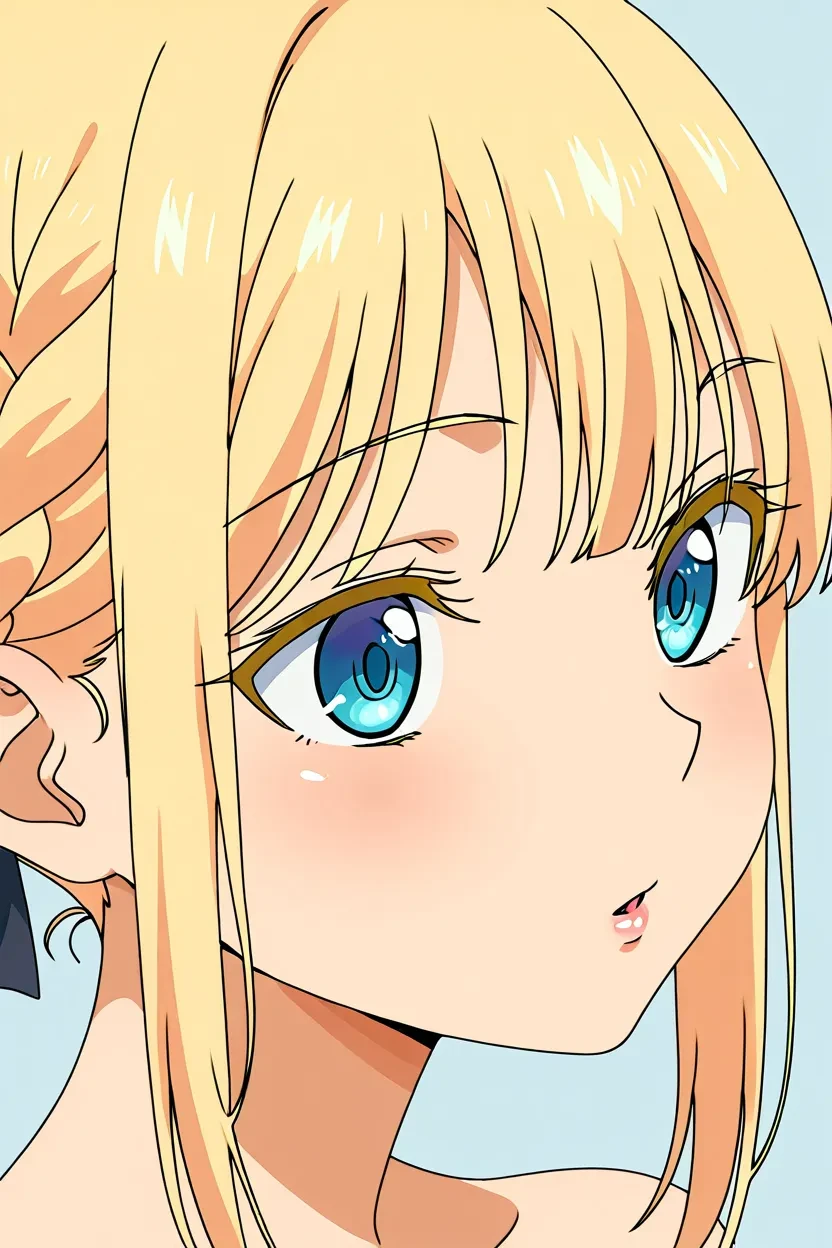 1girl, Alice (Choro Mesu Days), blonde hair, French braid, side locks, hair ribbon, lips, glossy lips, massive , Choro Mesu Days_art_style, 4k, HD, superb quality, anime_coloring