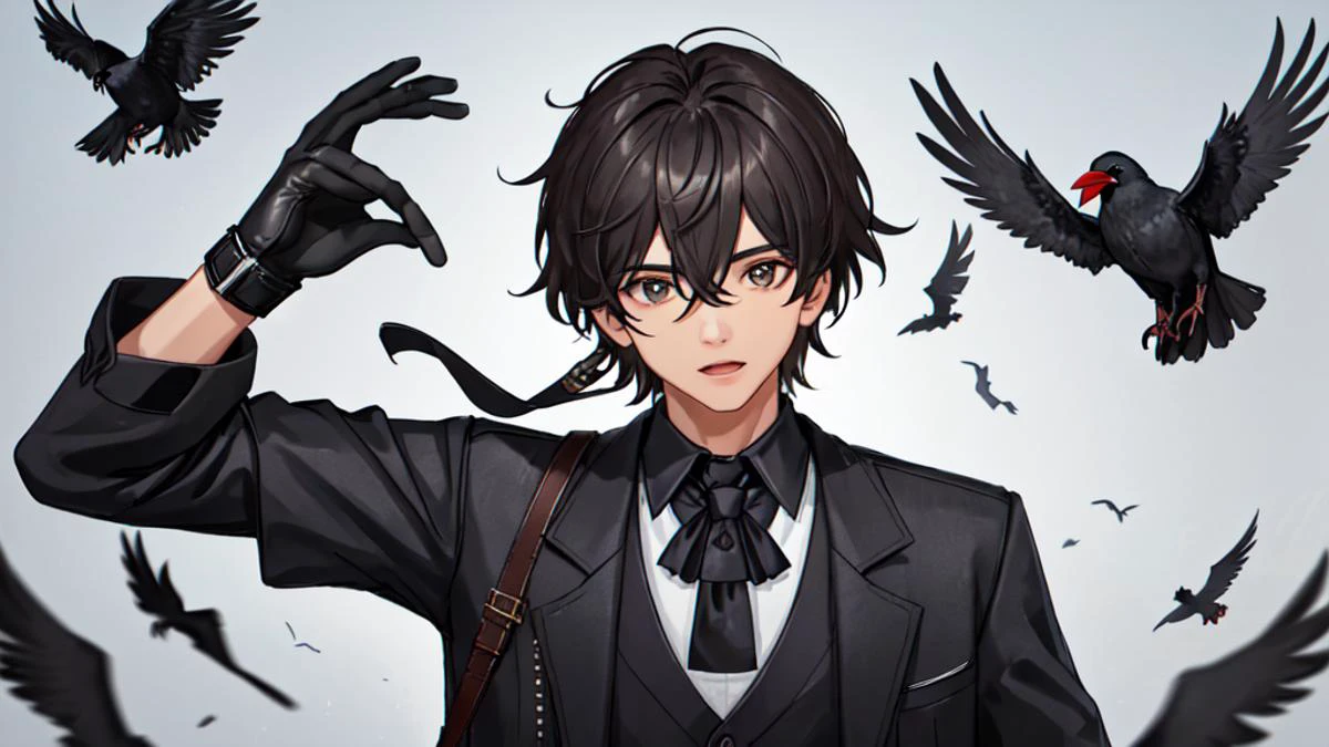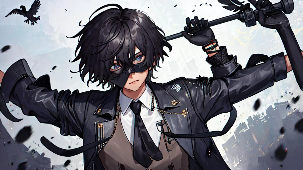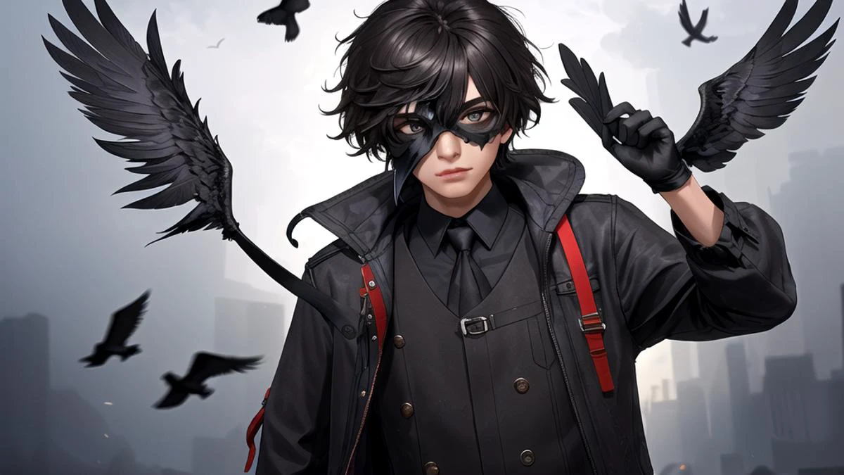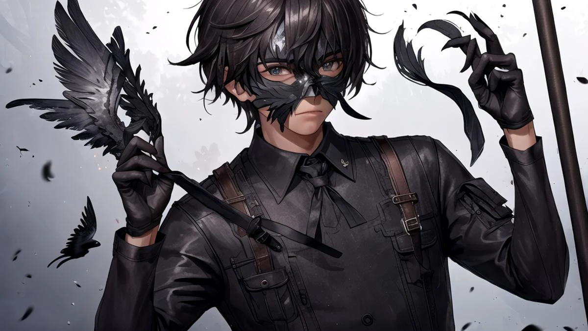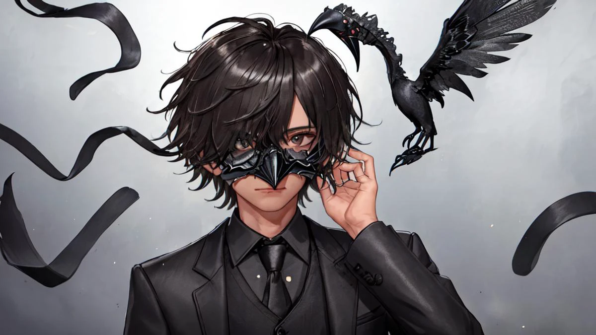 1 boy wearing a crow mask