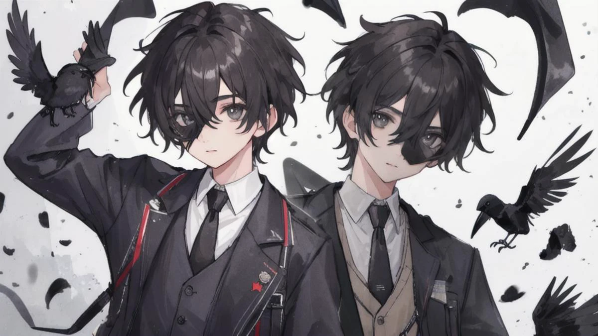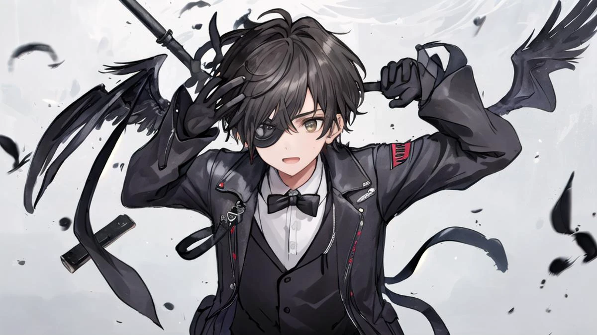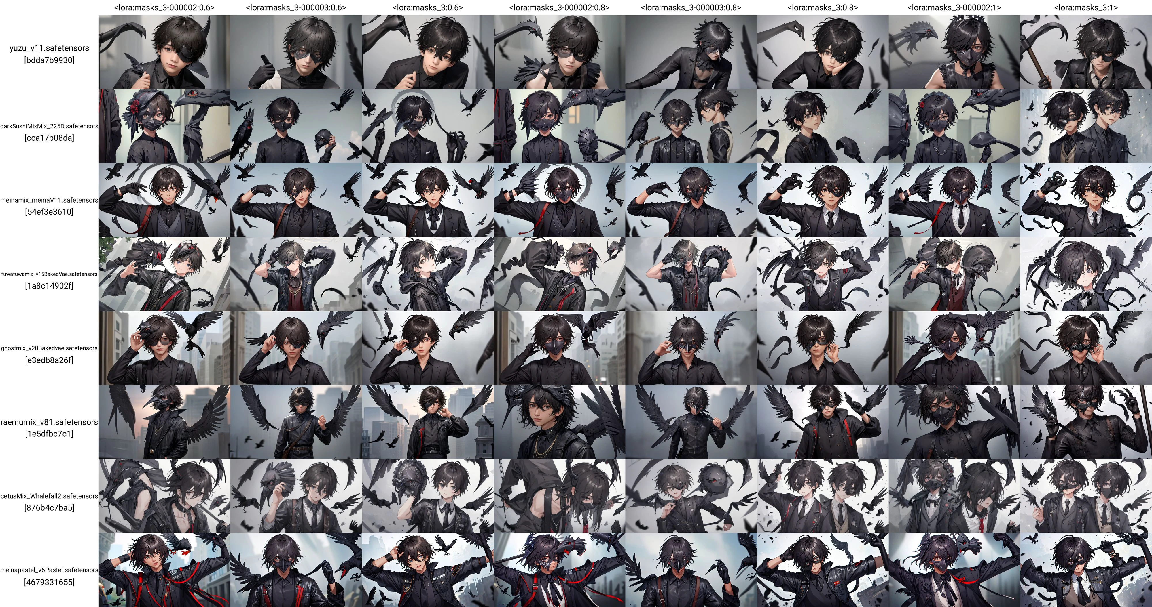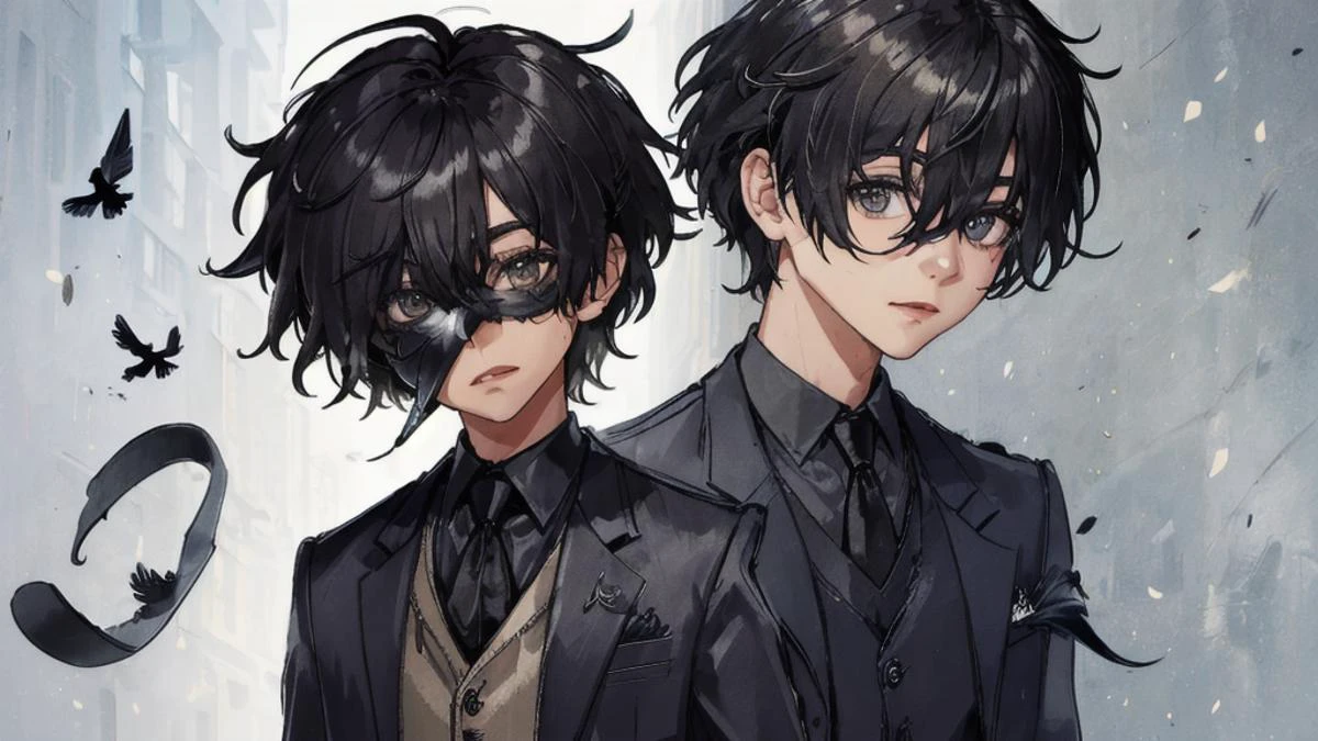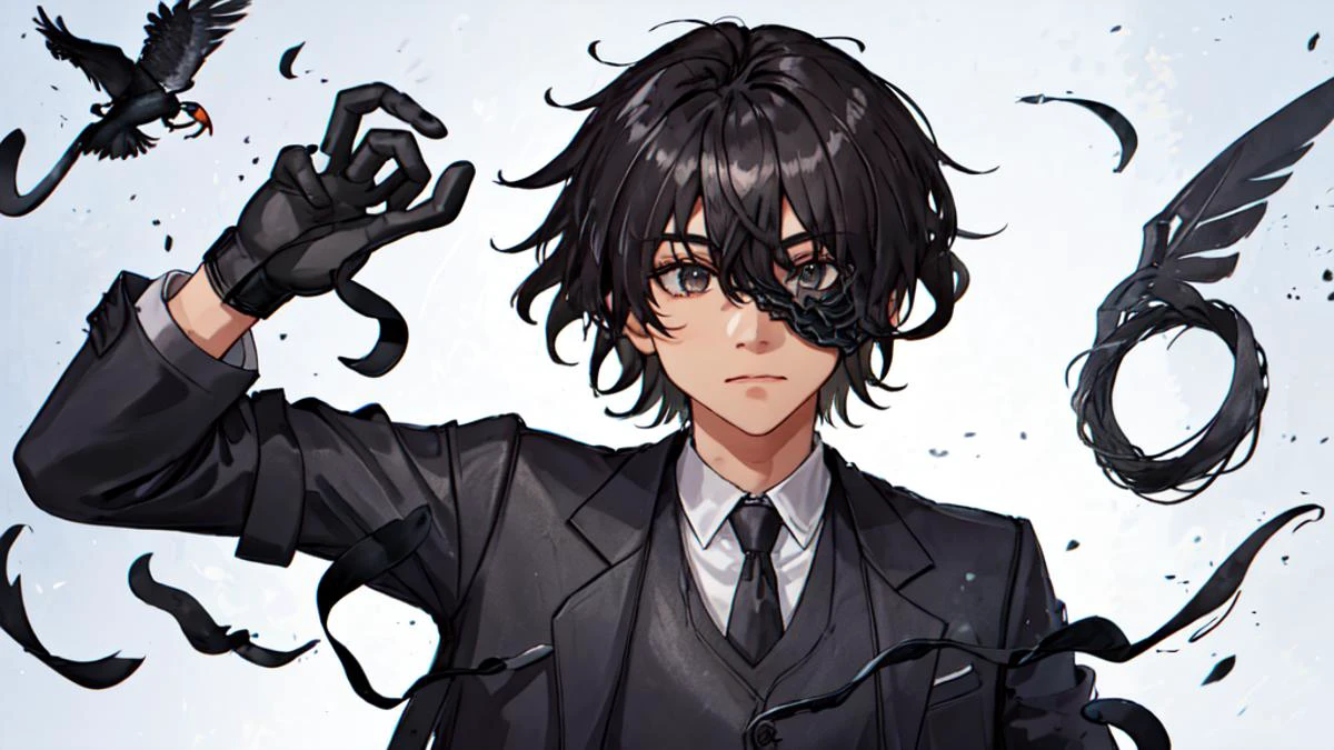 1 boy wearing a crow mask
