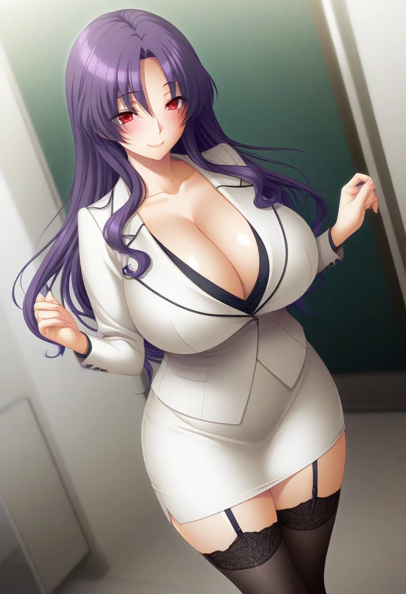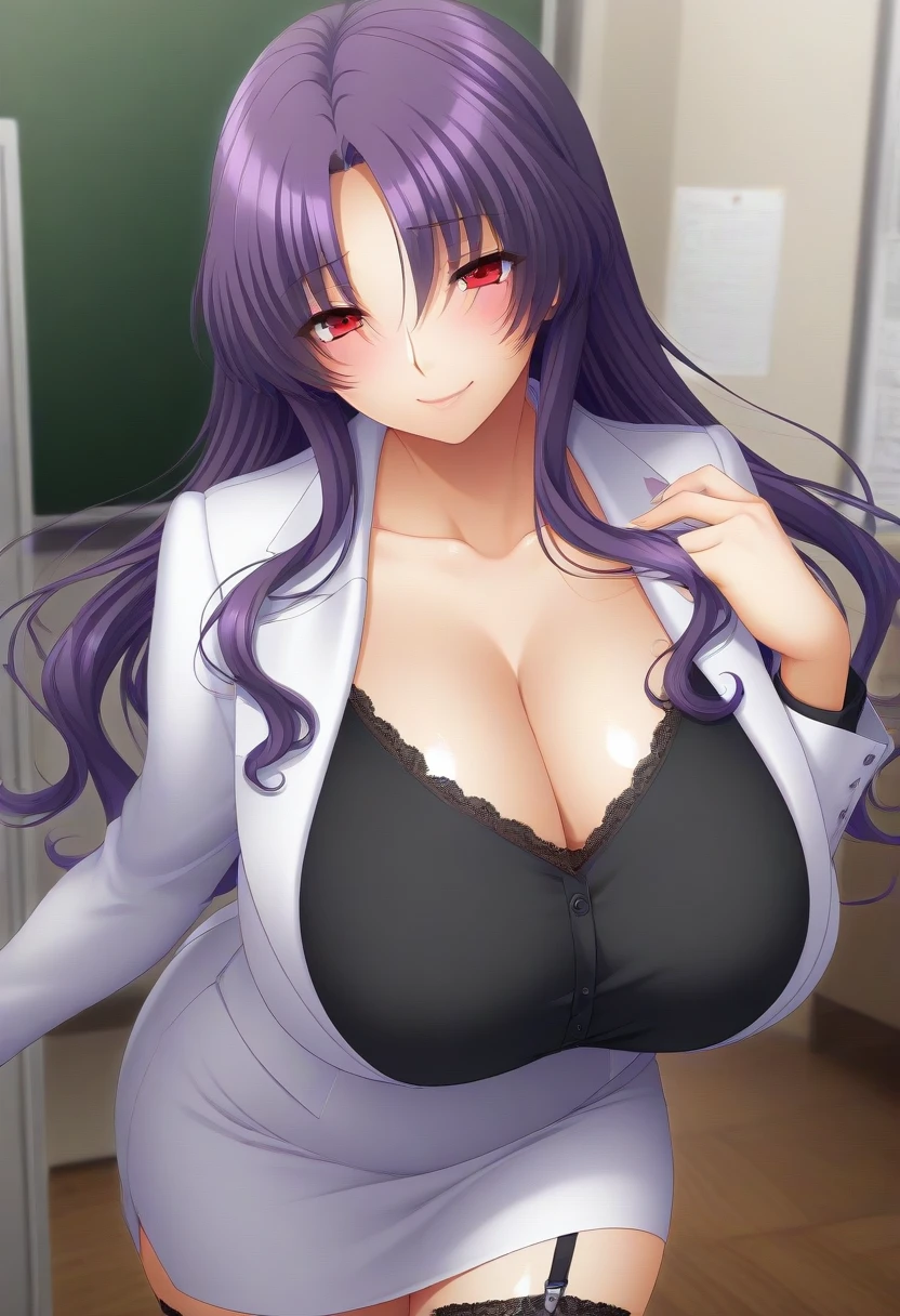 Recommend Prompt:Anju Matsuura, red eyes, purple hair, long hair,