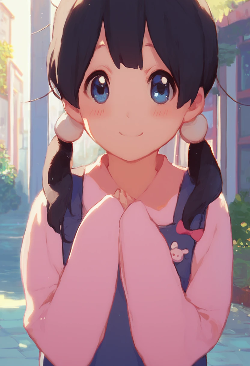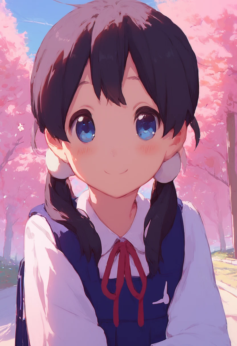 Tags: kitashirakawa tamako, blue eyes, twintails, hair ornament, black hair, school uniform