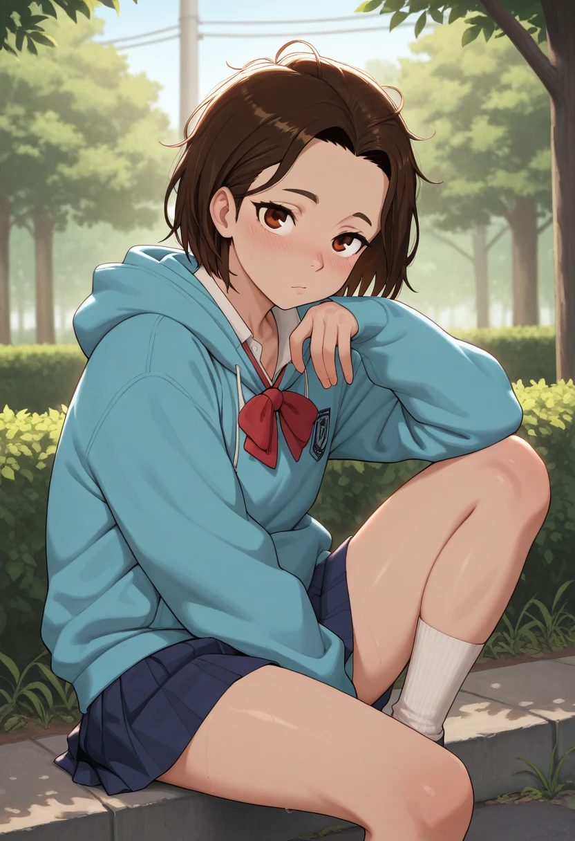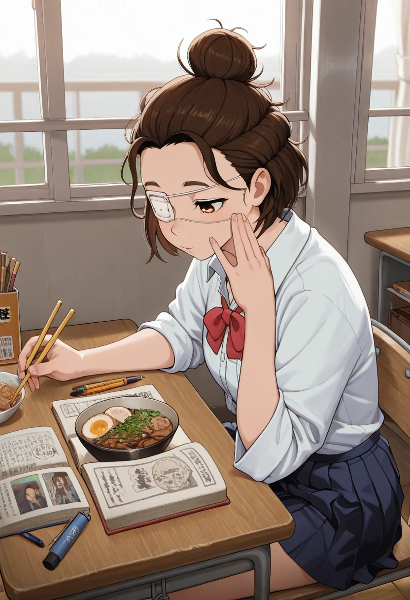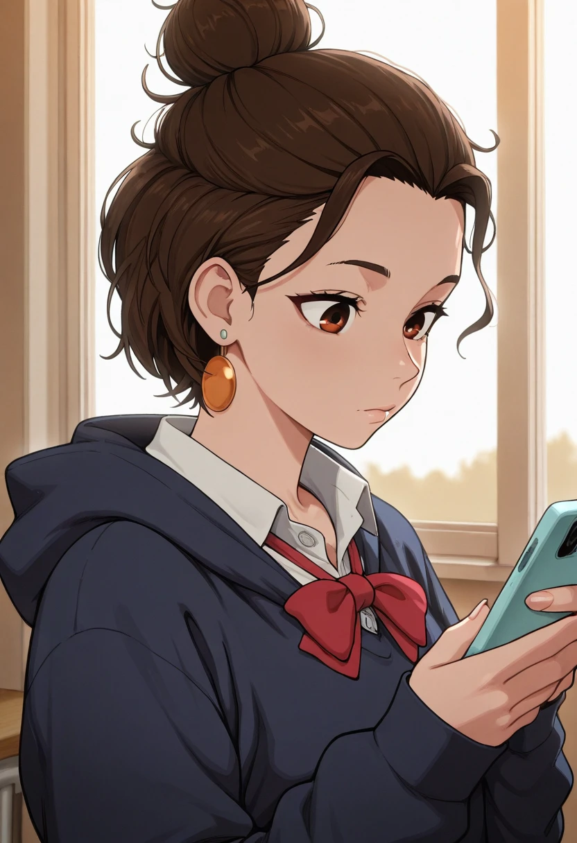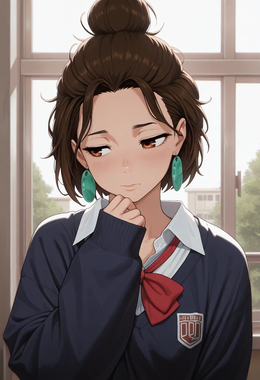 Trigger Words: miko (dandadan), short hair, brown hair, brown eyes, hair bun, single hair bun