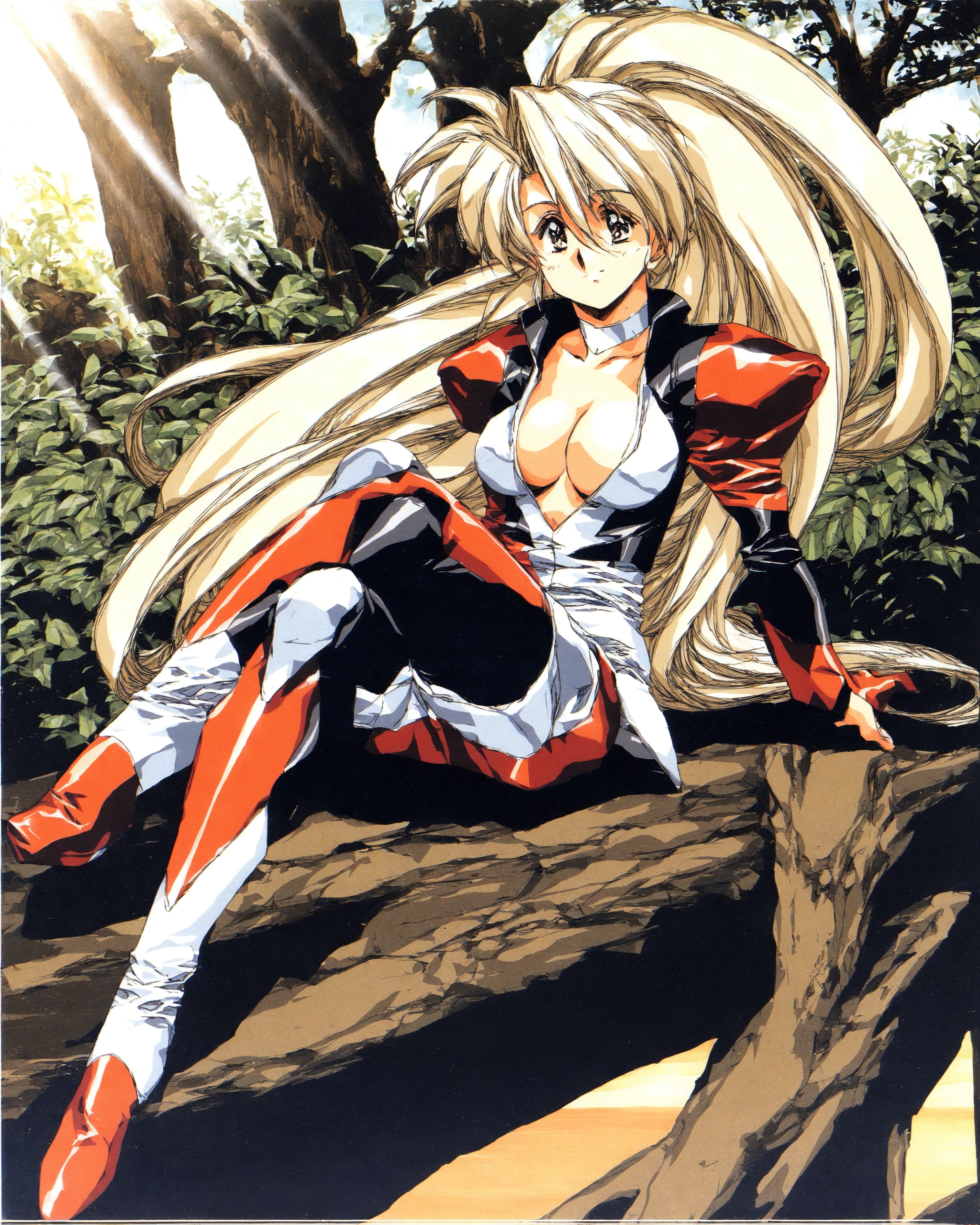 score_9, source_anime, 3girls, 1980s \(style\), cleavage, by kawarajima kou, smile, open mouth, one eye closed, serious, closed mouth, official art <lora:NEW_ERAv2.1:1>
