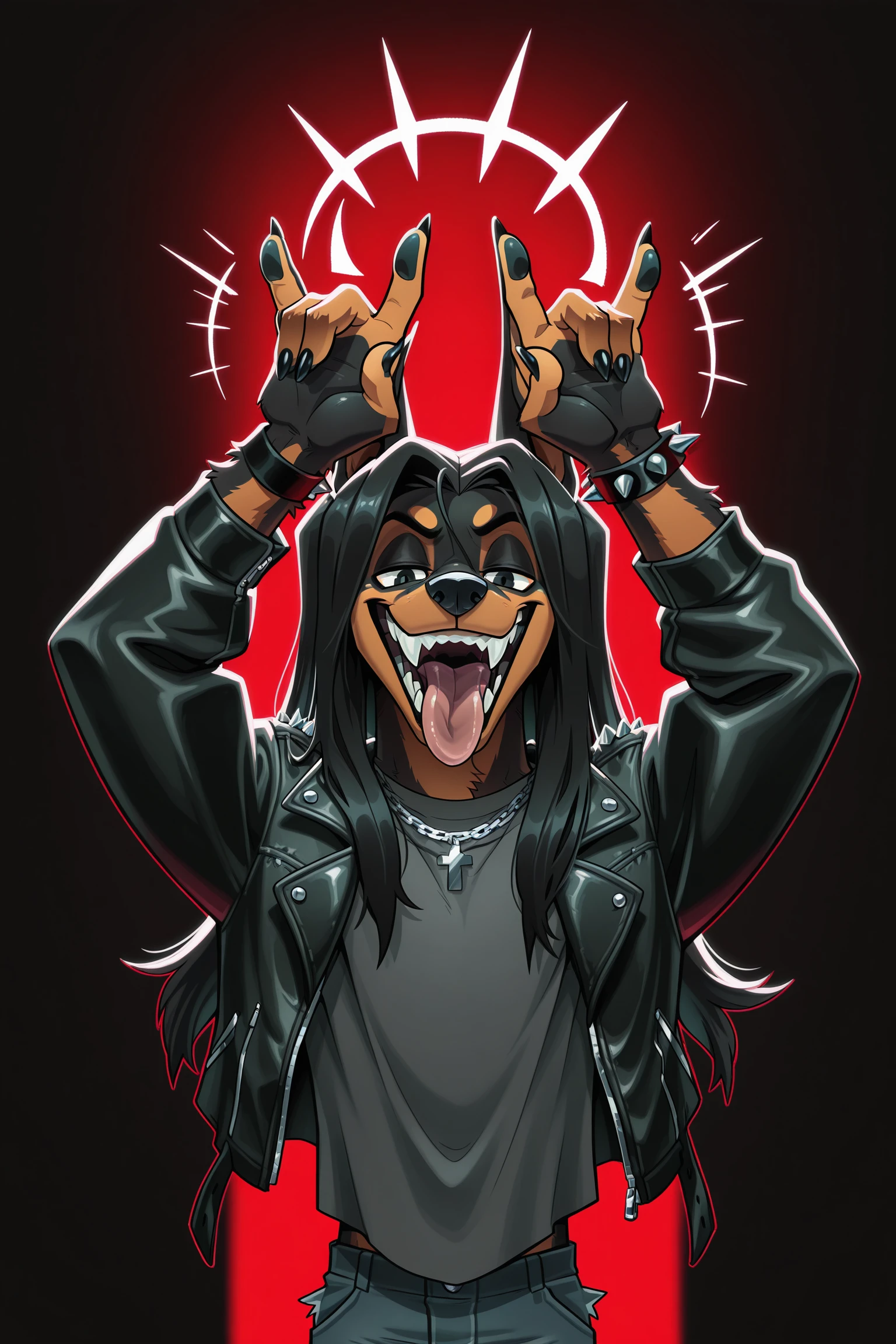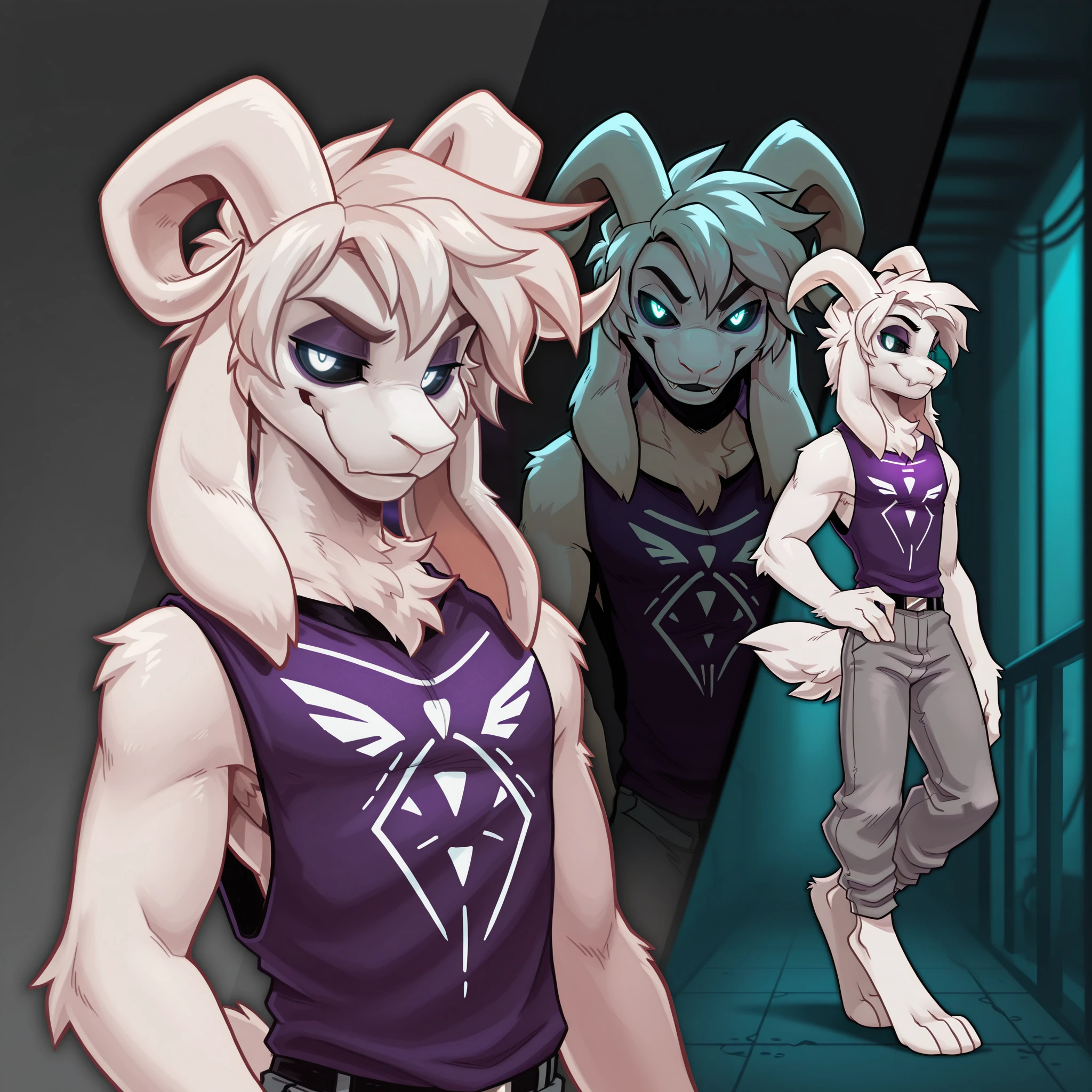 by drunkenfix, logan (drunkenfix), human, humanoid, blonde hair, long hair, very long hair, tatoo, arm tattoo, makeup, eyeshadow, black eyeshadow, grey eyes, ear piercing, piercing, thick eyebrows, fangs, muscular, muscular male, 1boy, solo, male focus, looking at side, crop top, belt, pants, shirt, open mouth, midriff, chain, smile, teeth, black shirt, abs, navel, short sleeves, necklace, hand on hip, jewelry, yellow background, gradient background, striped backgroundNote: The artist uses several well-known furry characters (cartoons, movies, comics, etc.), but in the training I left Lora flexible and malleable to be adapted / mixed with other Loras. My recommendation is that you use a character-specific Lora so that the final result is satisfactory.