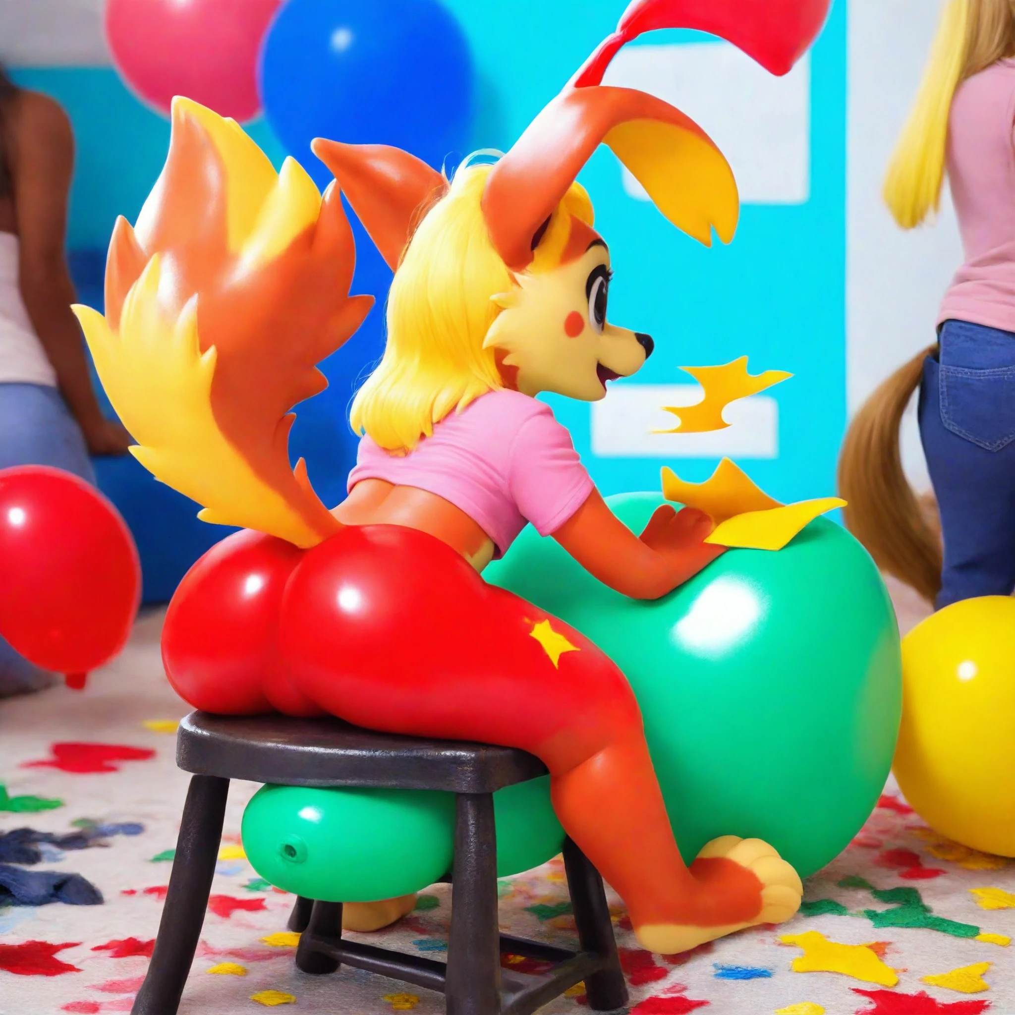 For people who really want to see characters sitting on a balloon. Geared more towards semi-poppers and non-poppers, I can't promise that balloon-popping images will never be generated. Happy squeaking!