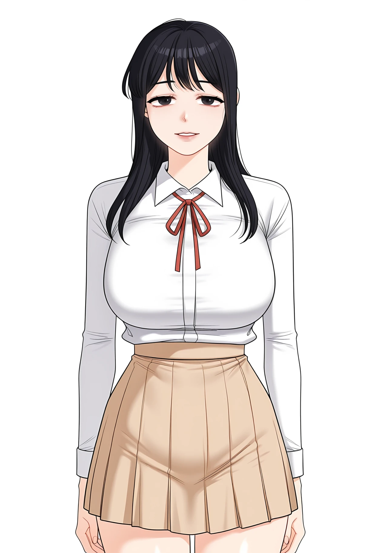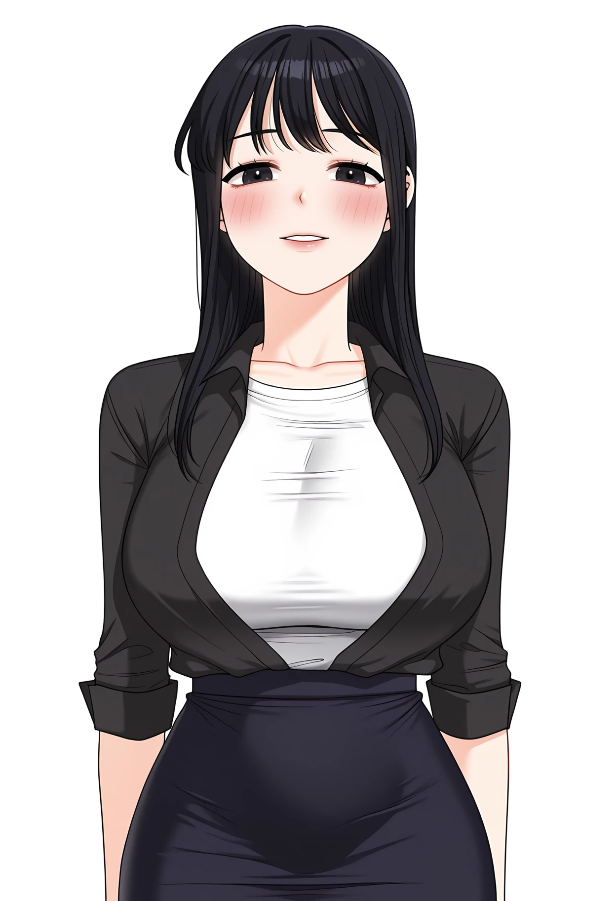 yeon_haneul, mature female, black hair, long hair, black eyes, large breasts,