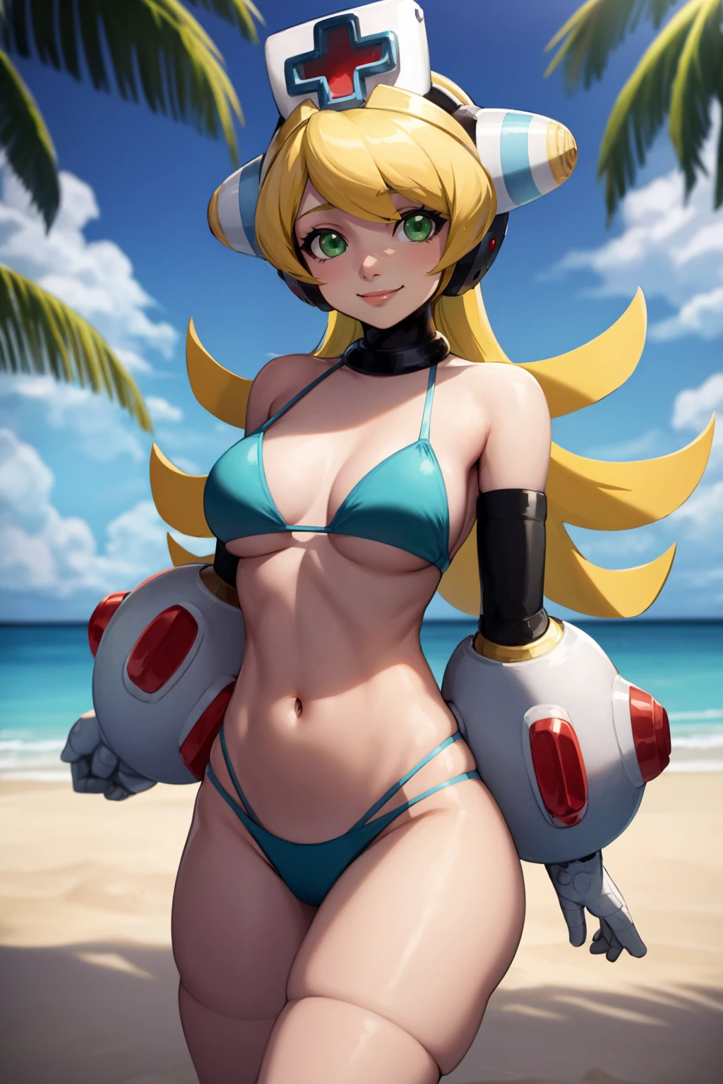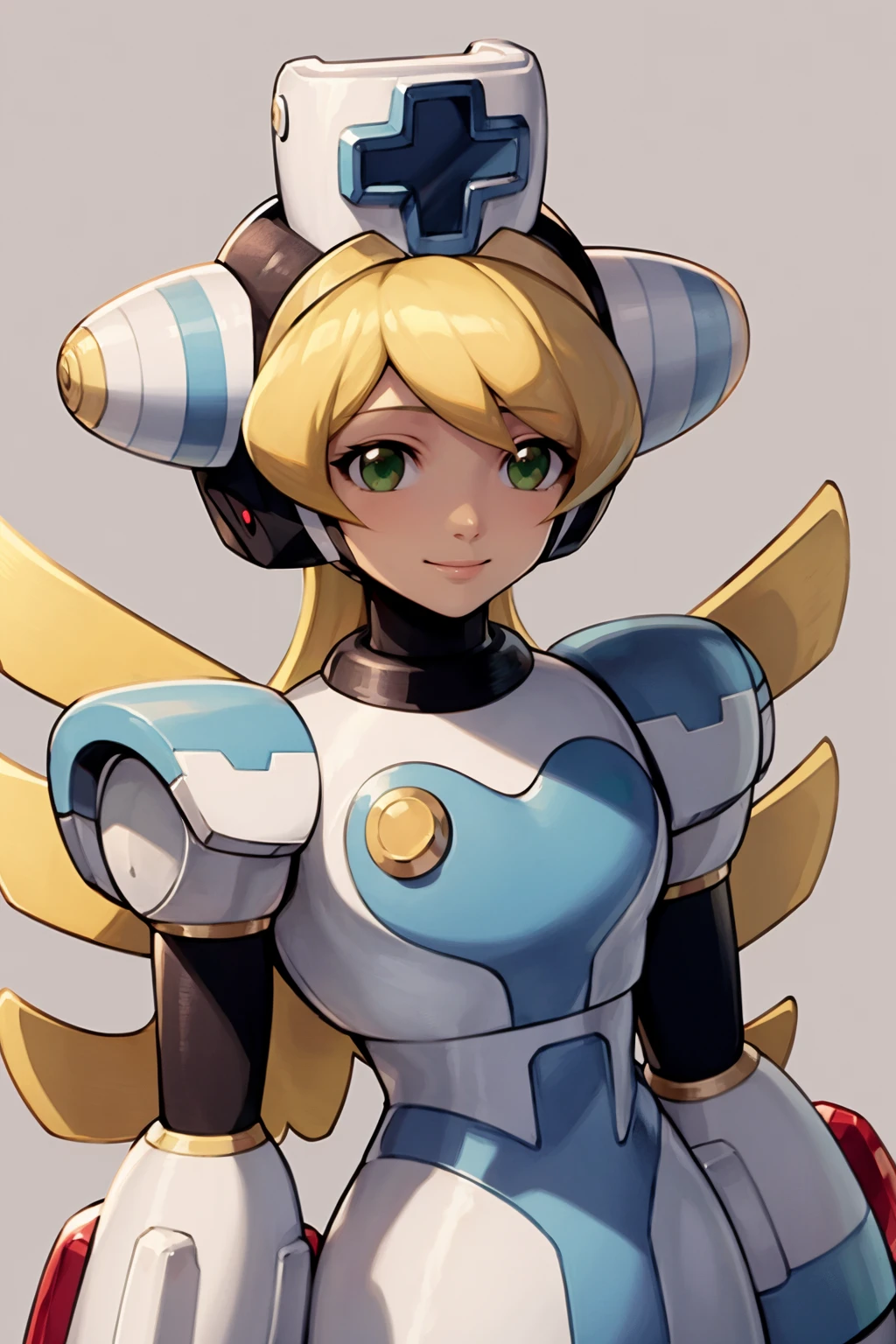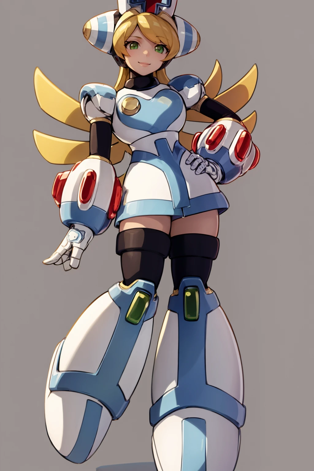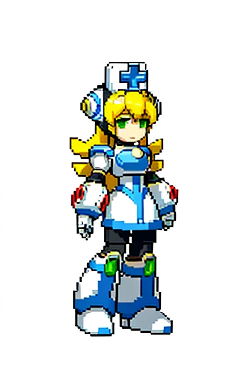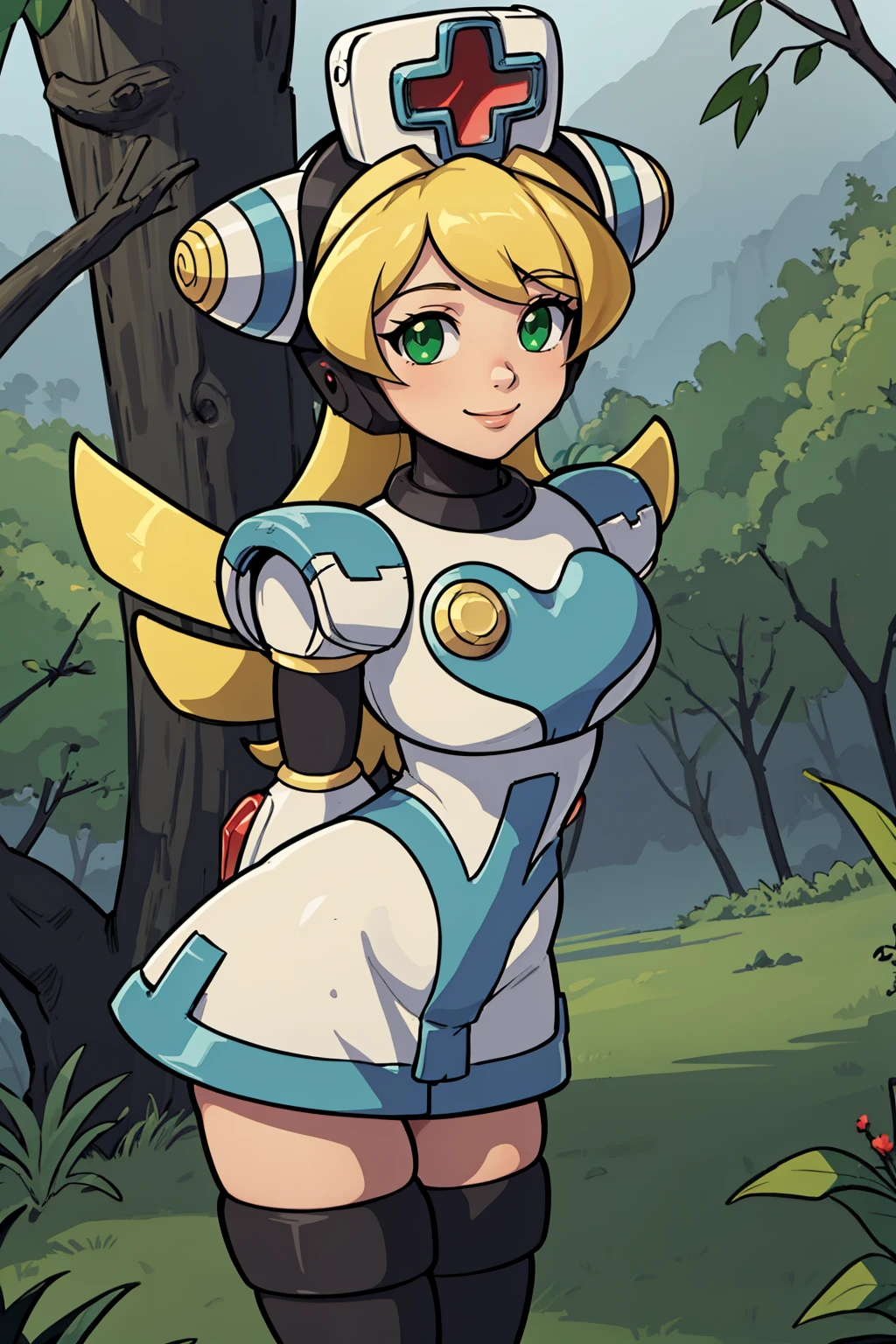 Basic prompts : 1girl, blonde hair, green eyes, long hair, nurse, nurse cap, android, robot, thighhighs