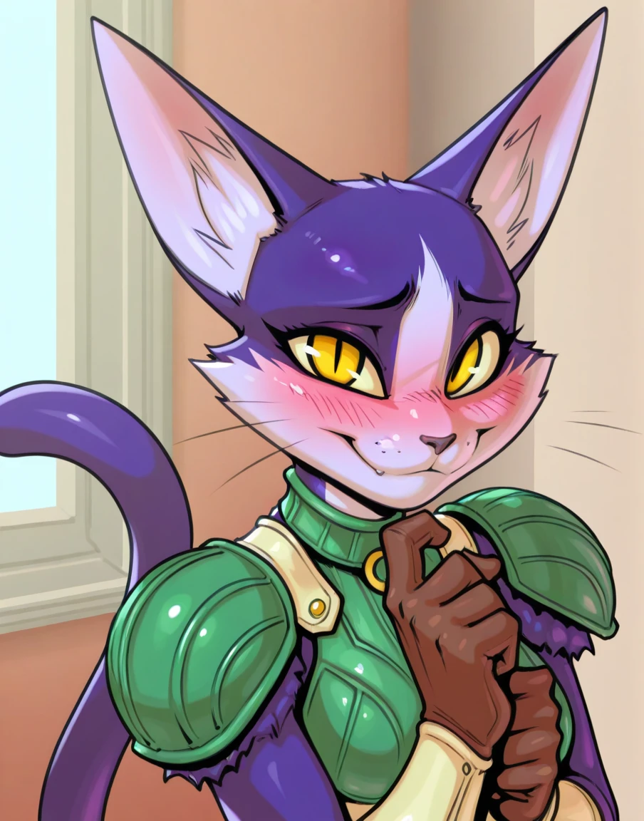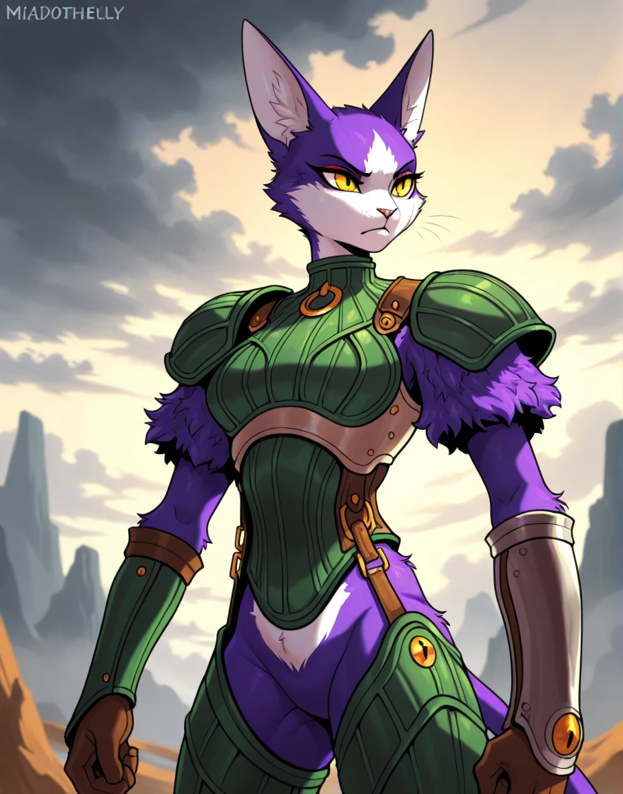 miadothack, female, anthro, cat, purple fur, yellow eyes, whiskers