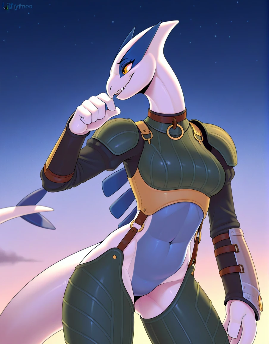 Tried to simplify the tags a bit more. The ones in the trigger word area should be all you need for the character. Armor will put on her in game outfit but you can play around with other clothing and species tags to your heart's content~