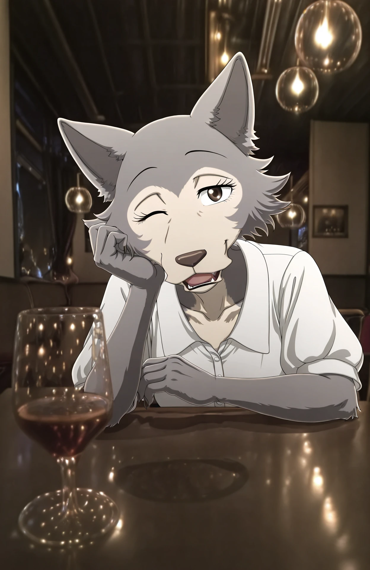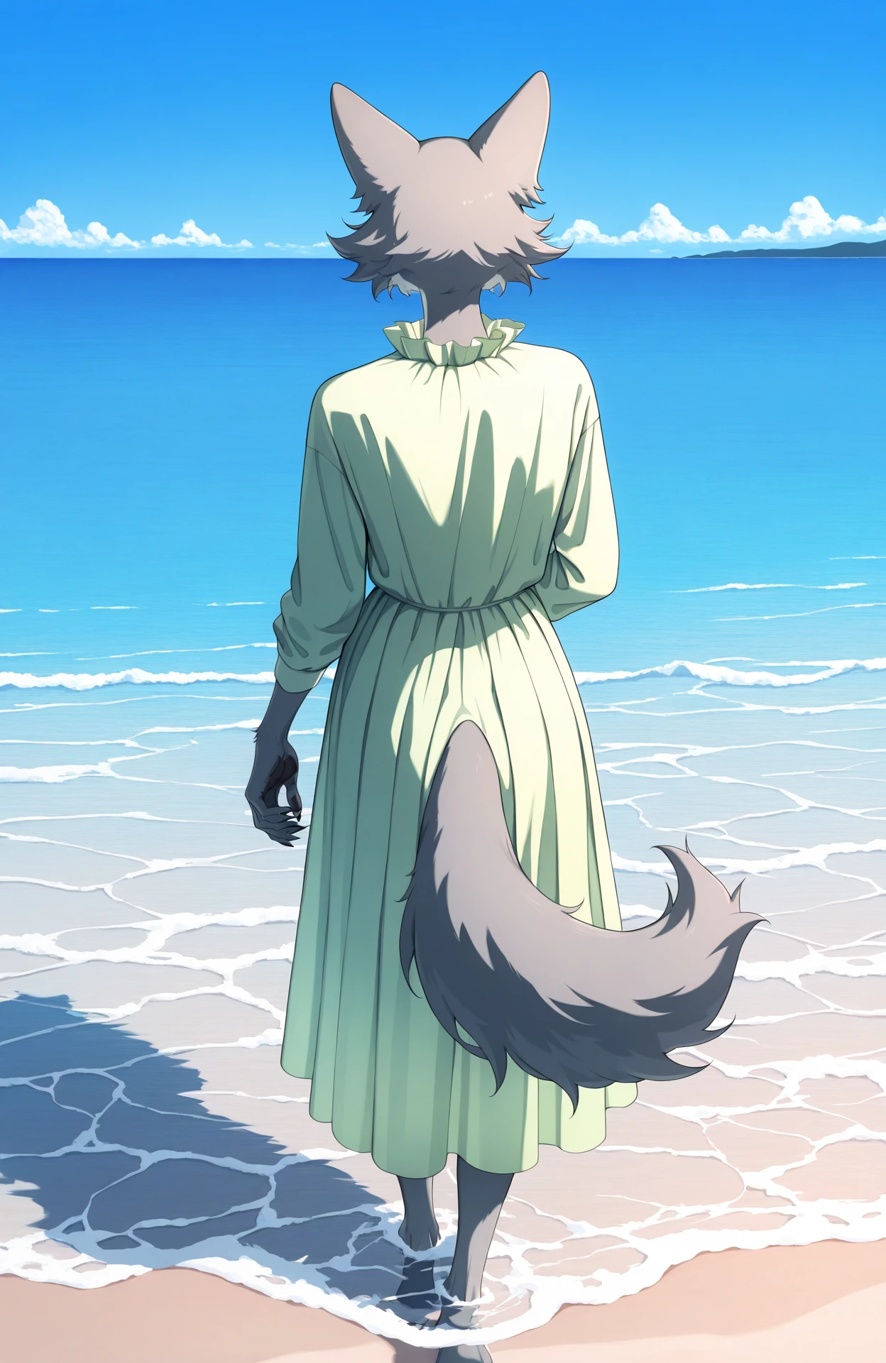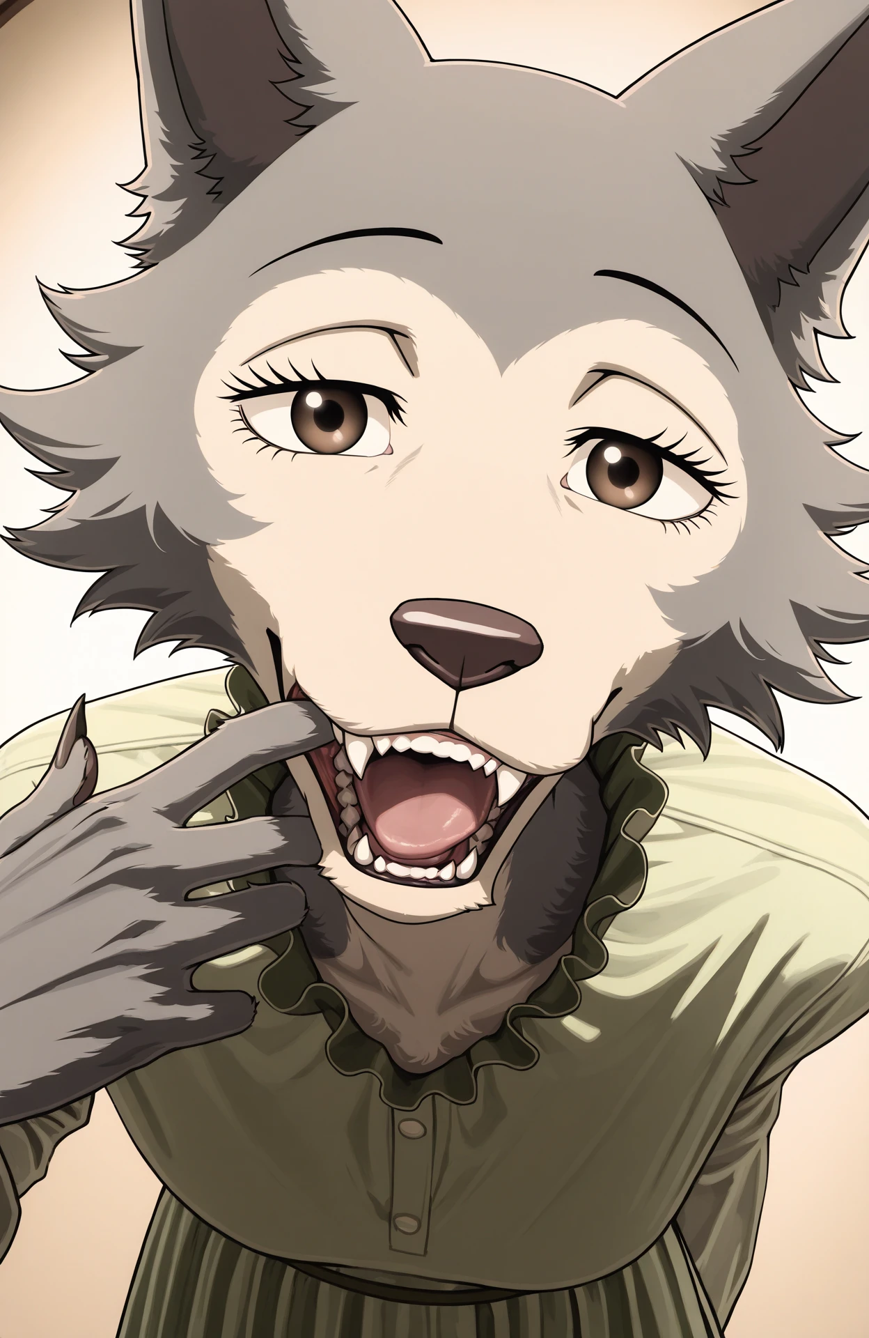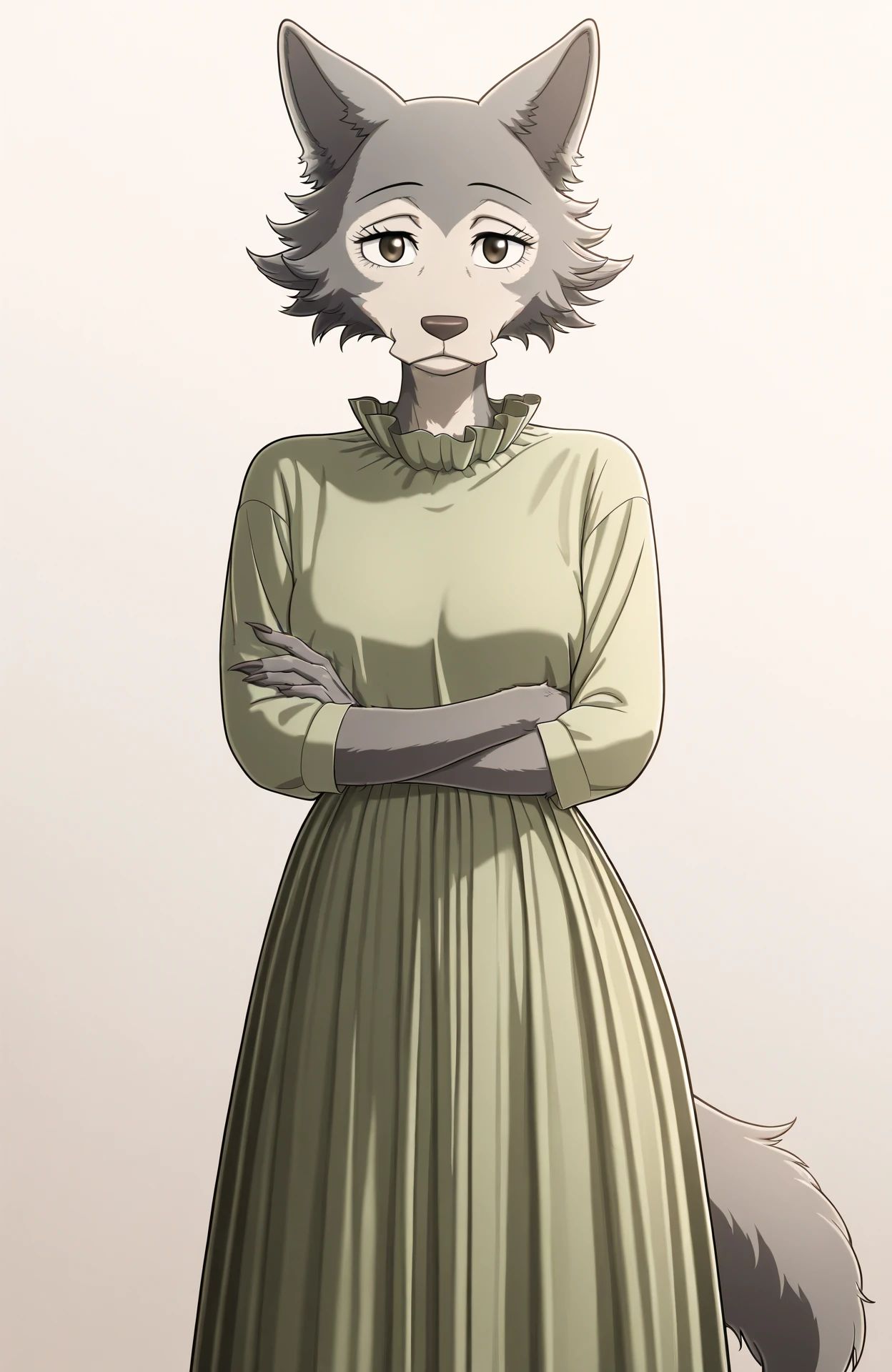 beastars, gray fur, light brown eyes, eyelashes, green dress, ruffled collar