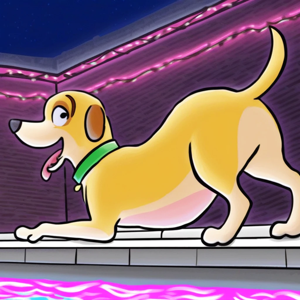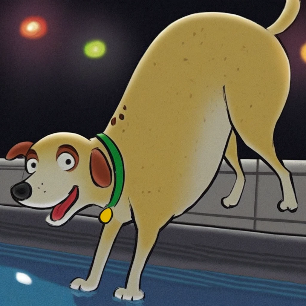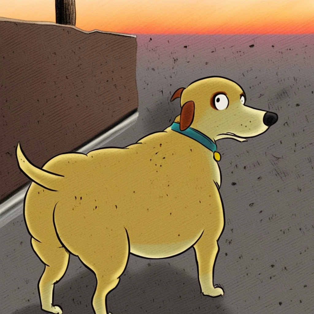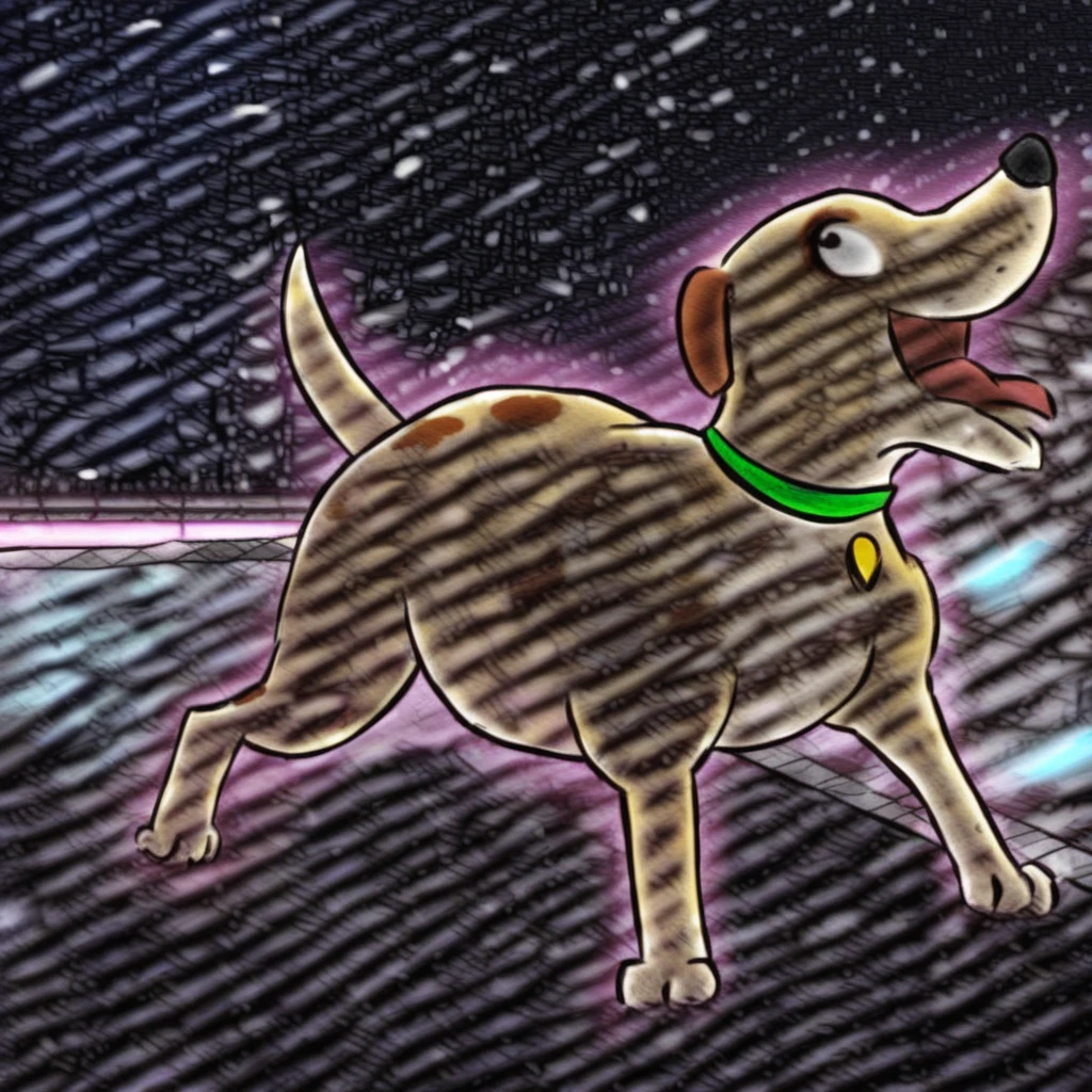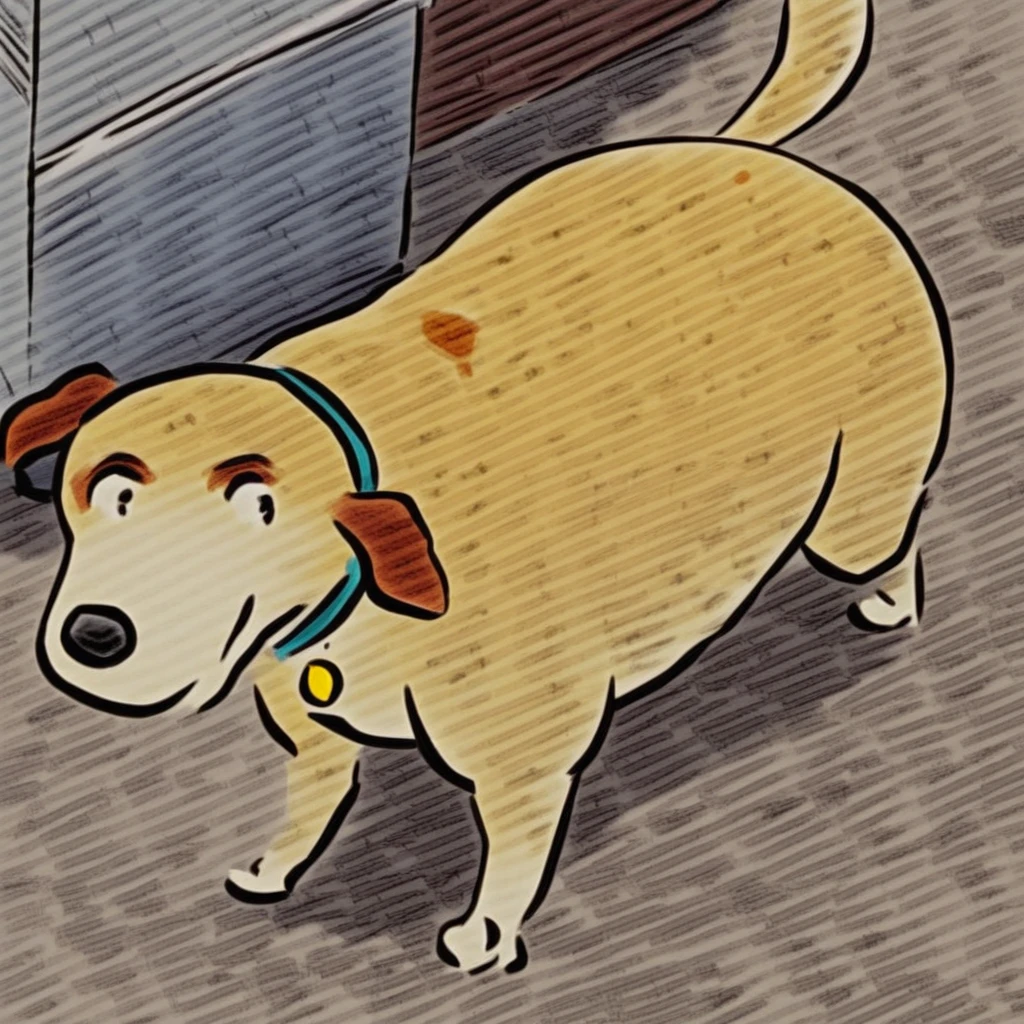 Prompt: martha lorraine (susan meddaugh style), feral, solo, dog, black eyes, red collar, cat suit