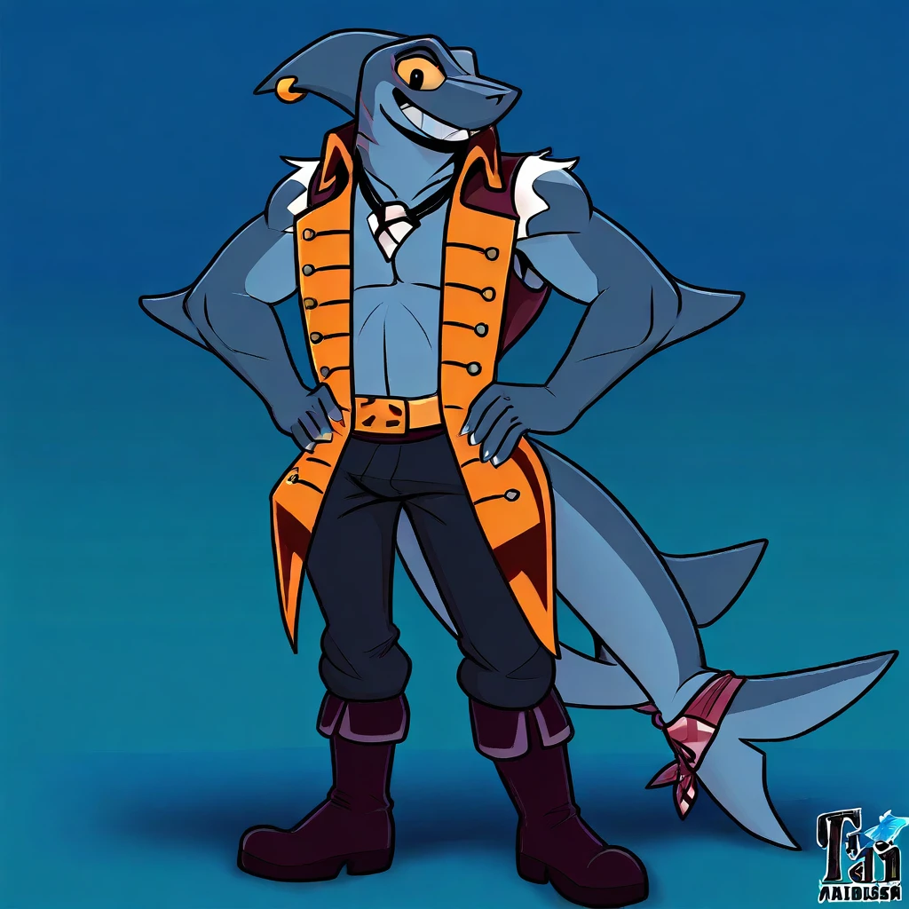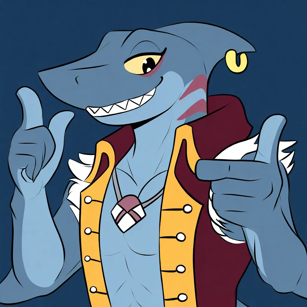 slade, shark, male, furry, blue body, two-tone body, yellow sclera