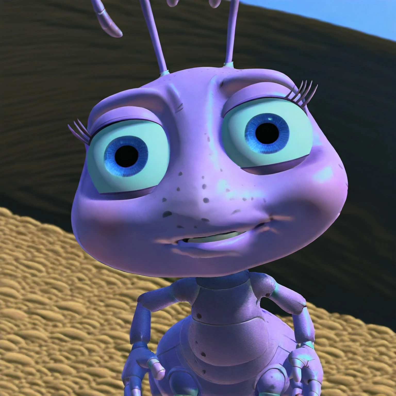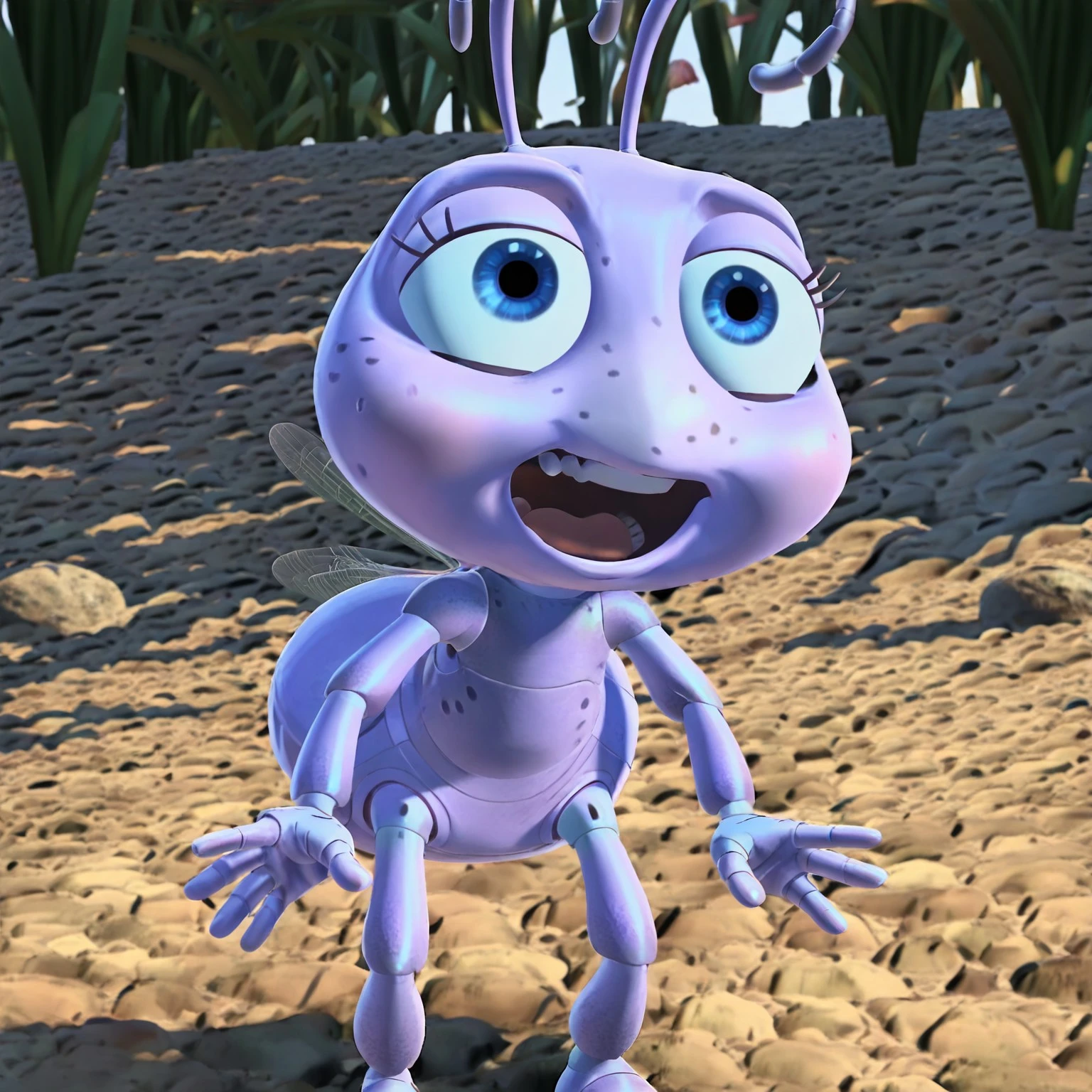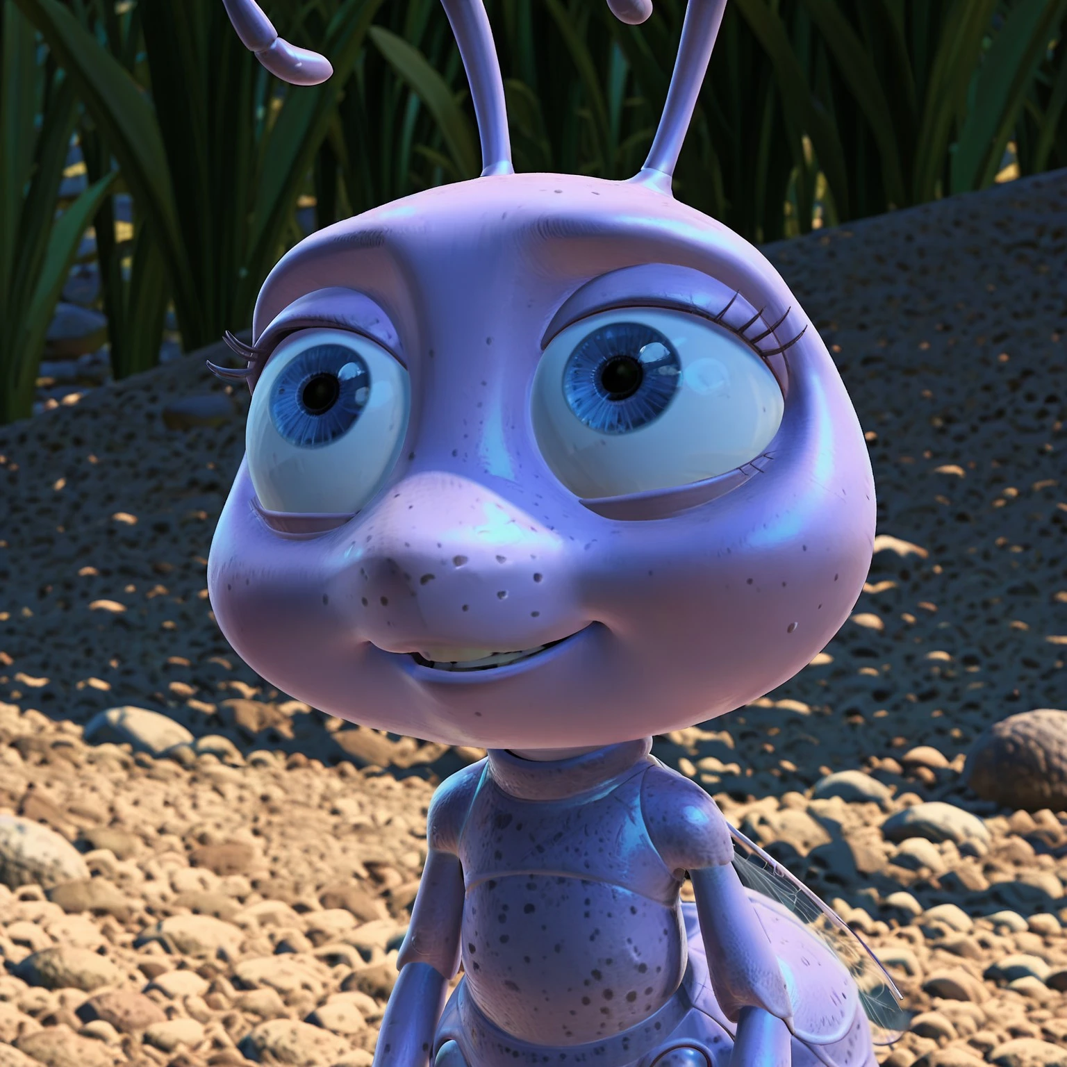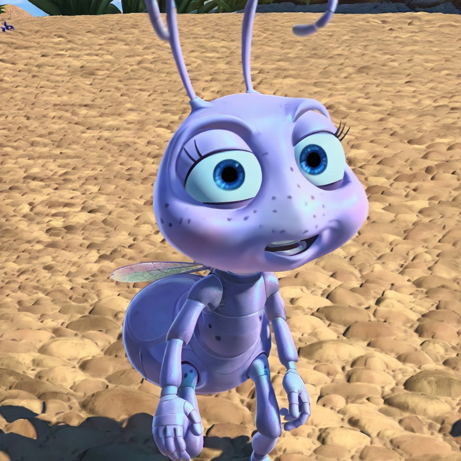 Princess_Dot, Dot from a bugs life, pink ant, pink skin, female ant, antennae, ant wings, anthropomorphic ant, 3d animation, pixar style