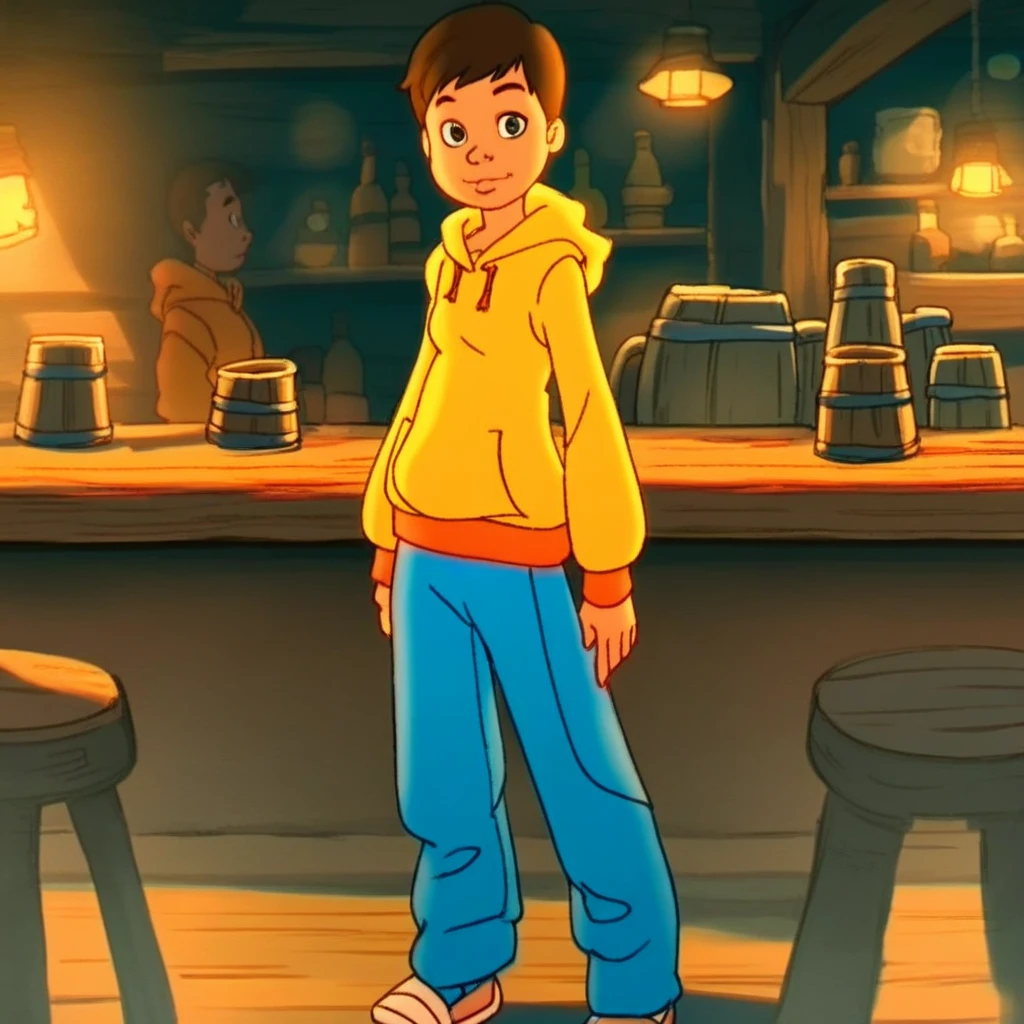 norton, brown hair, short hair, hoodie, pants