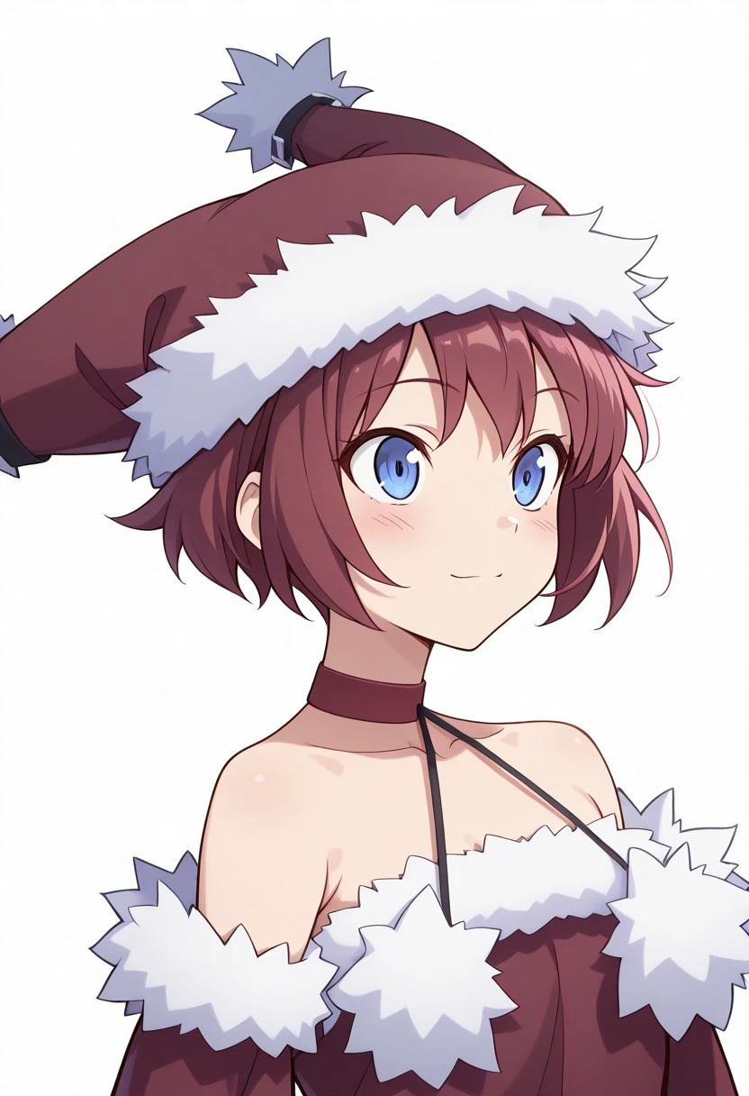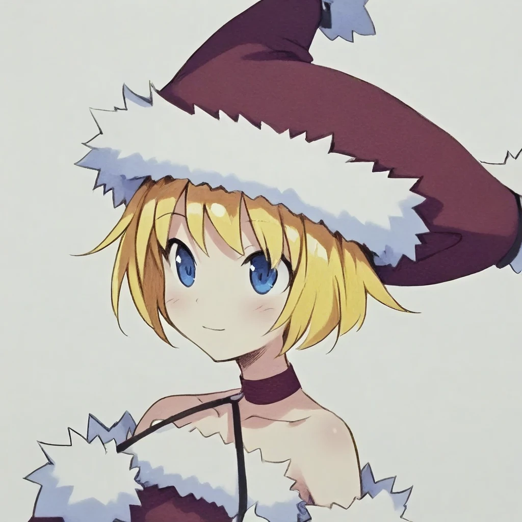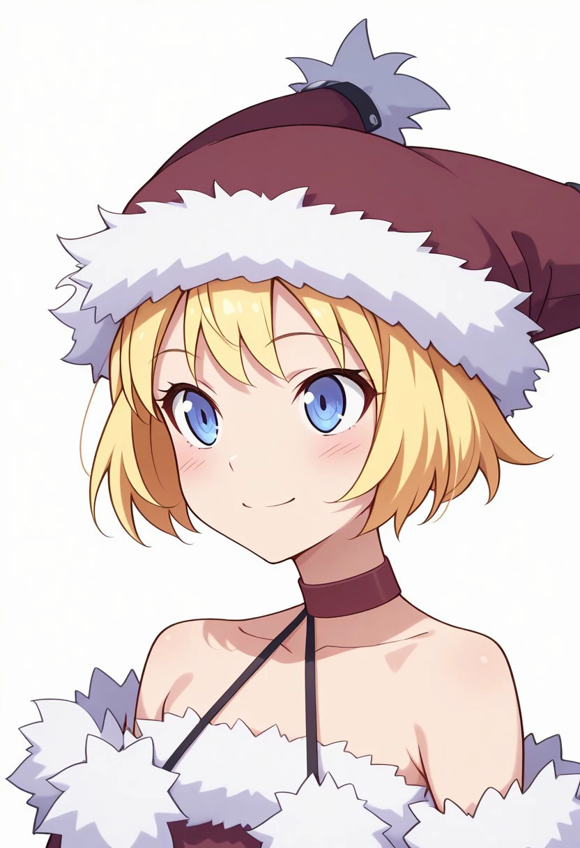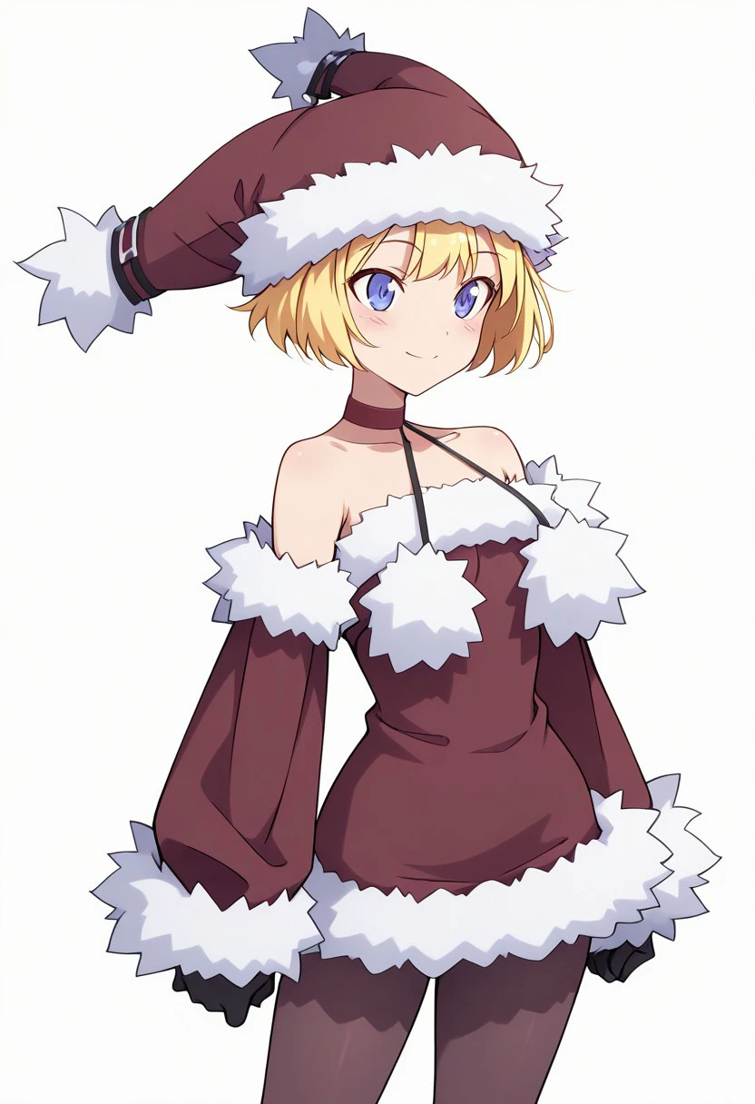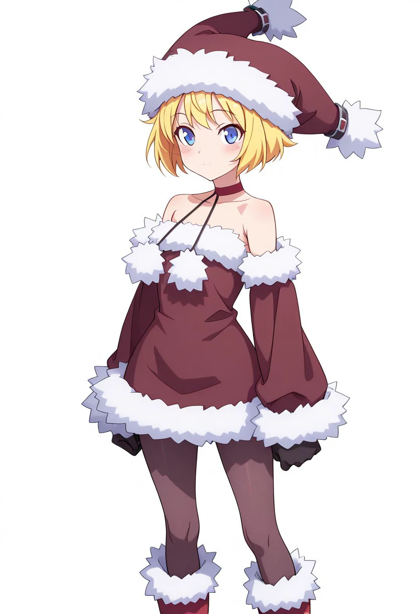Witch_PB,fur-trimmed sleeves, hat, pantyhose, fur-trimmed dress, fur-trimmed red clothes, fur-trimmed headwear, fur-trimmed boots , red footwear, bare shoulders, choker, detached sleeves