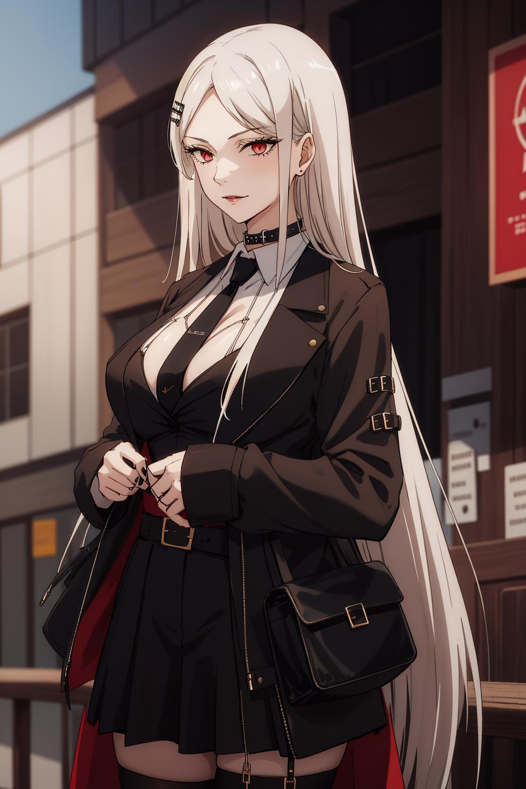 For completely canonical clothing use loRA at 1 or 0.6 (which I highly recommend) but using the additional prompt "black necktie"