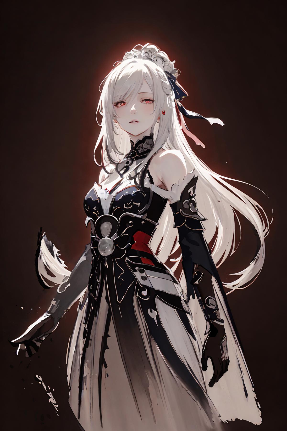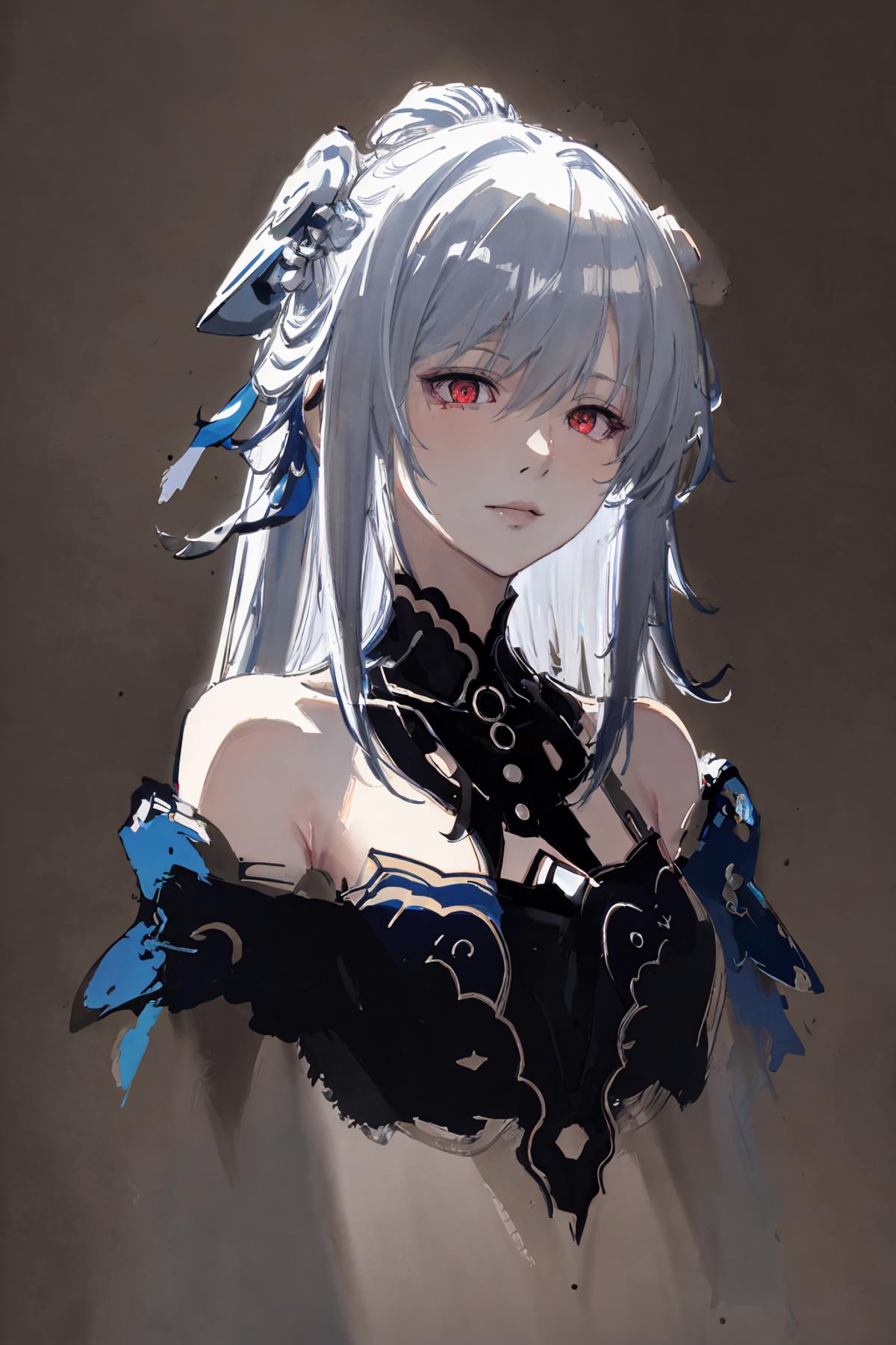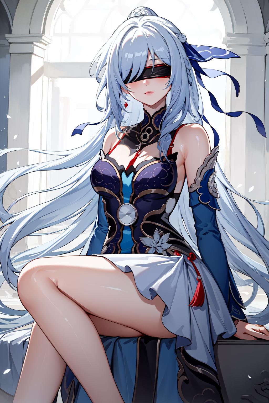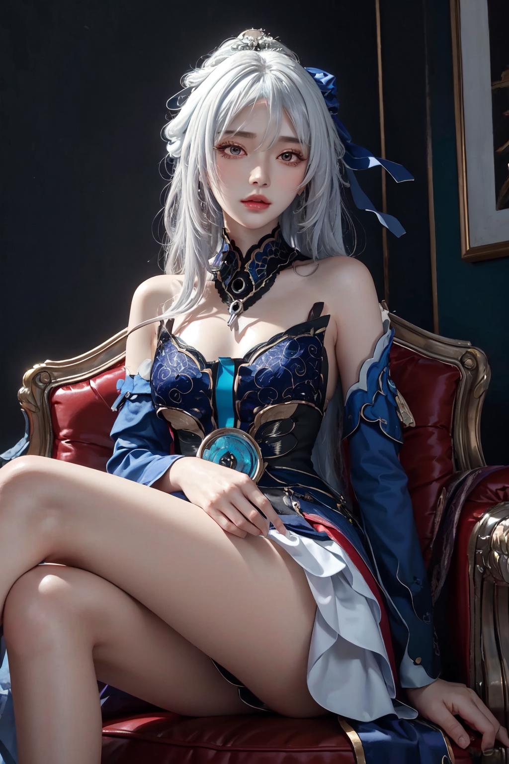 jingliu, 1girl, long hair, bangs, dress, bare shoulders, white hair, hair ornament, solo