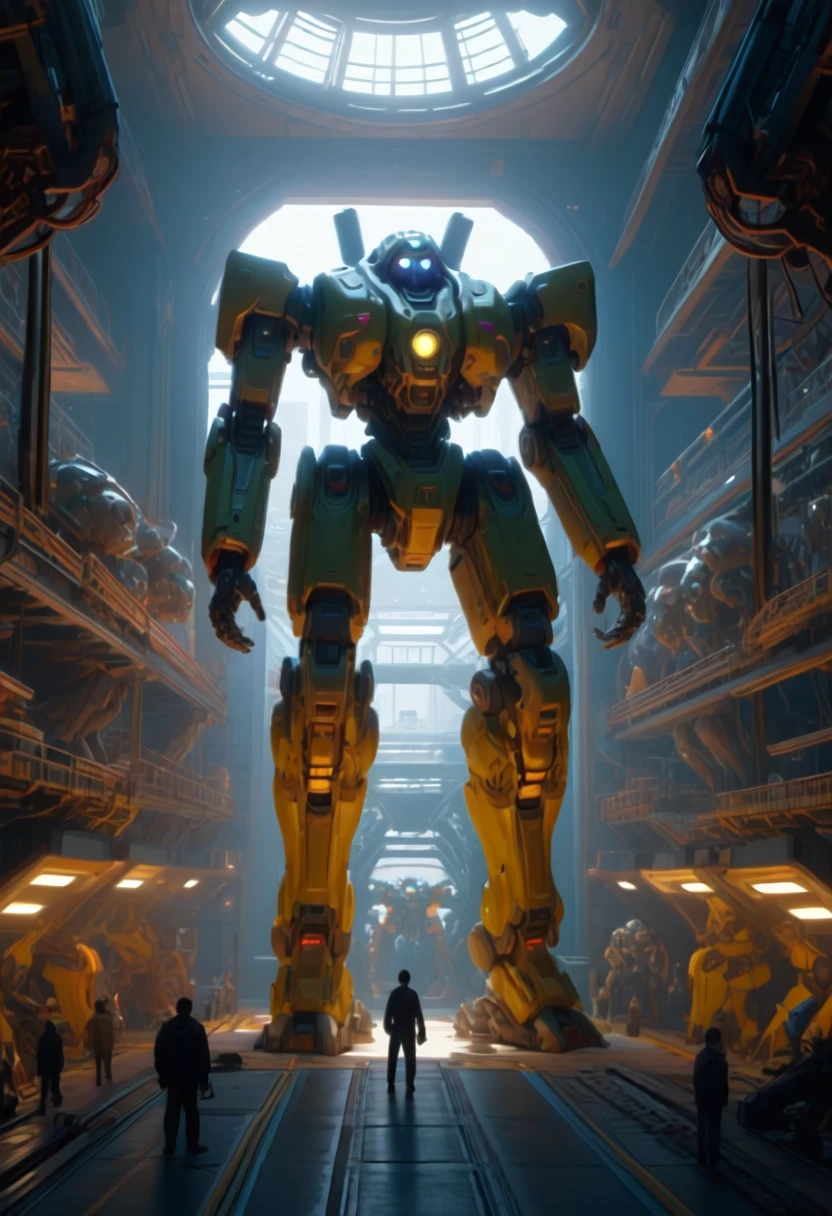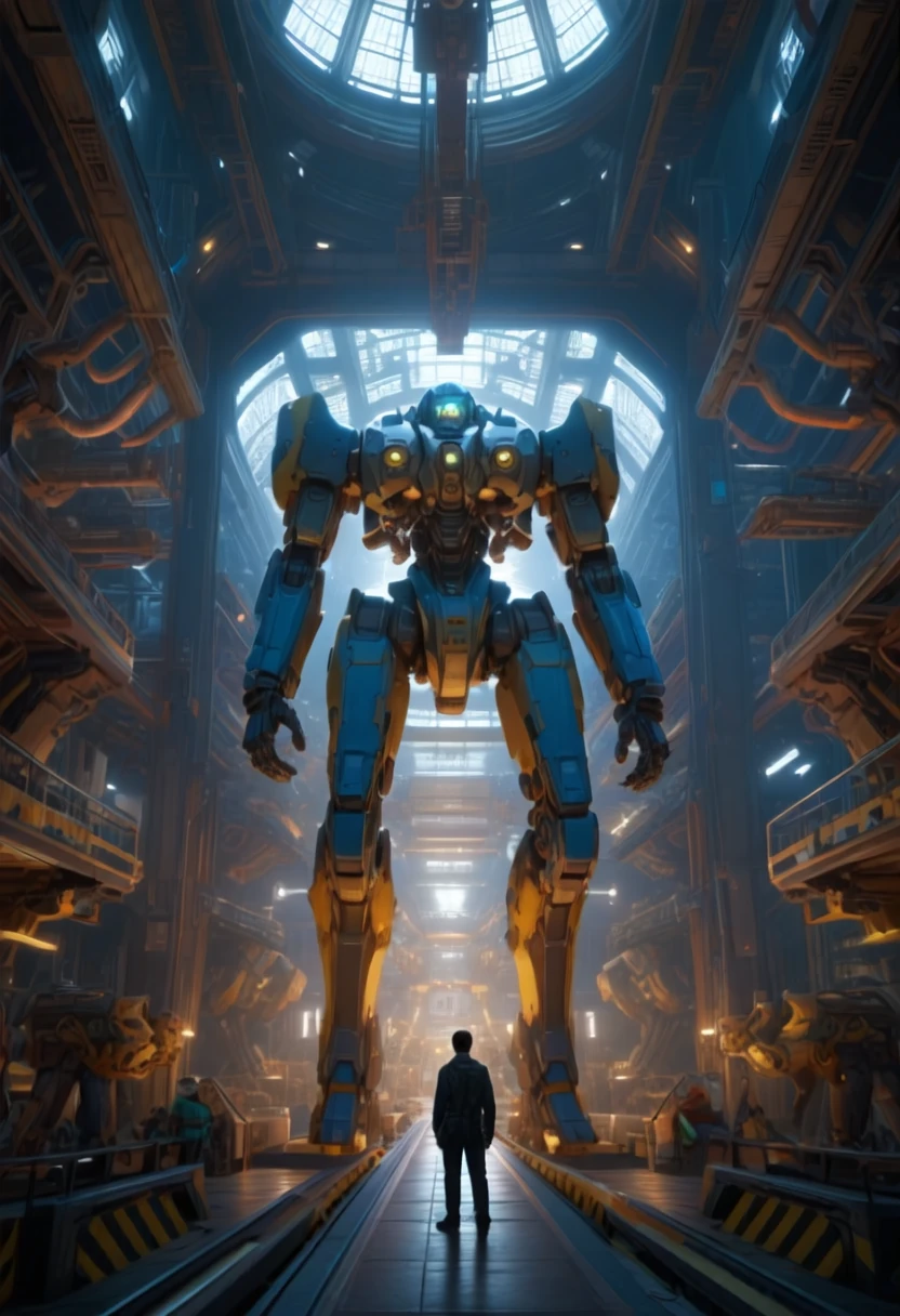 This is an SDXL lora for Mech Factory style interior backgrounds.