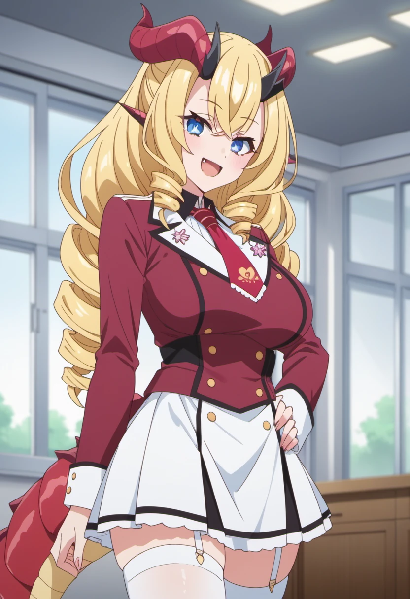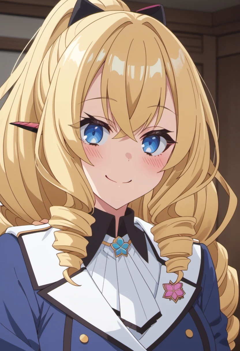 Trigger Words: ryuzaki karin, long hair, blonde hair, blue eyes, black horns, dragon horns, curled horns, dragon girl