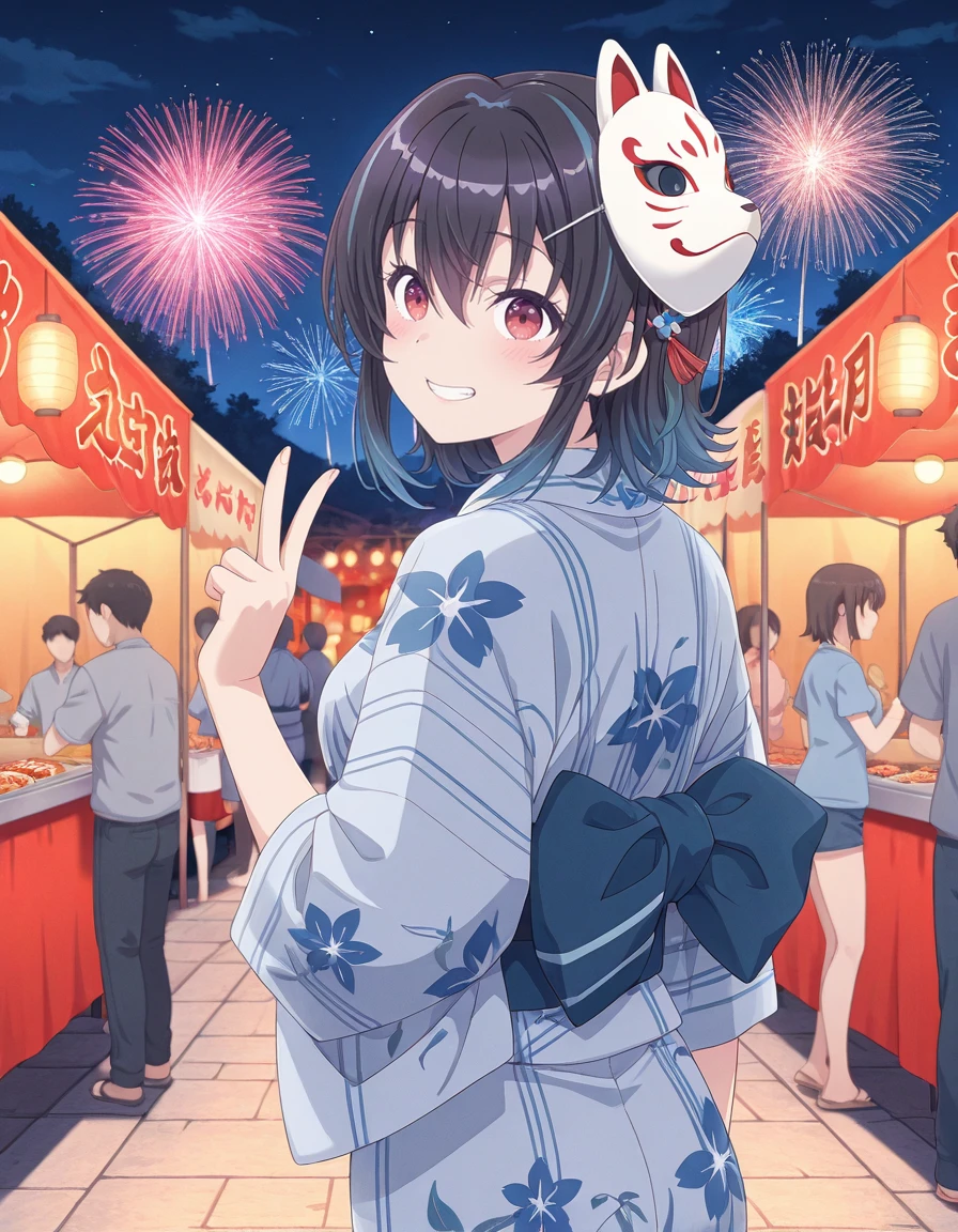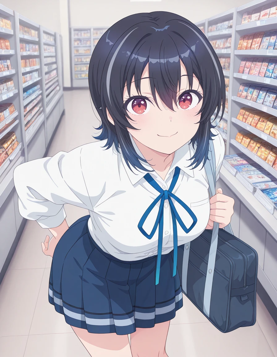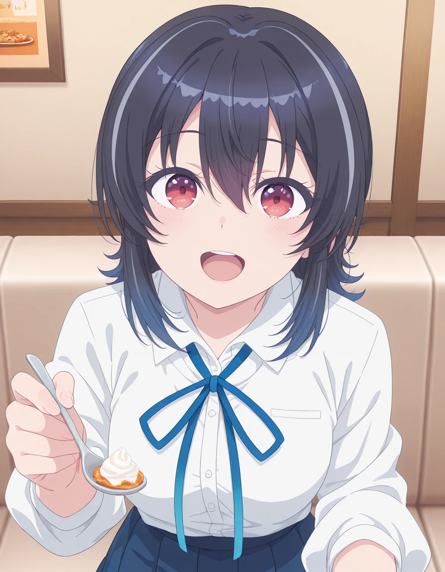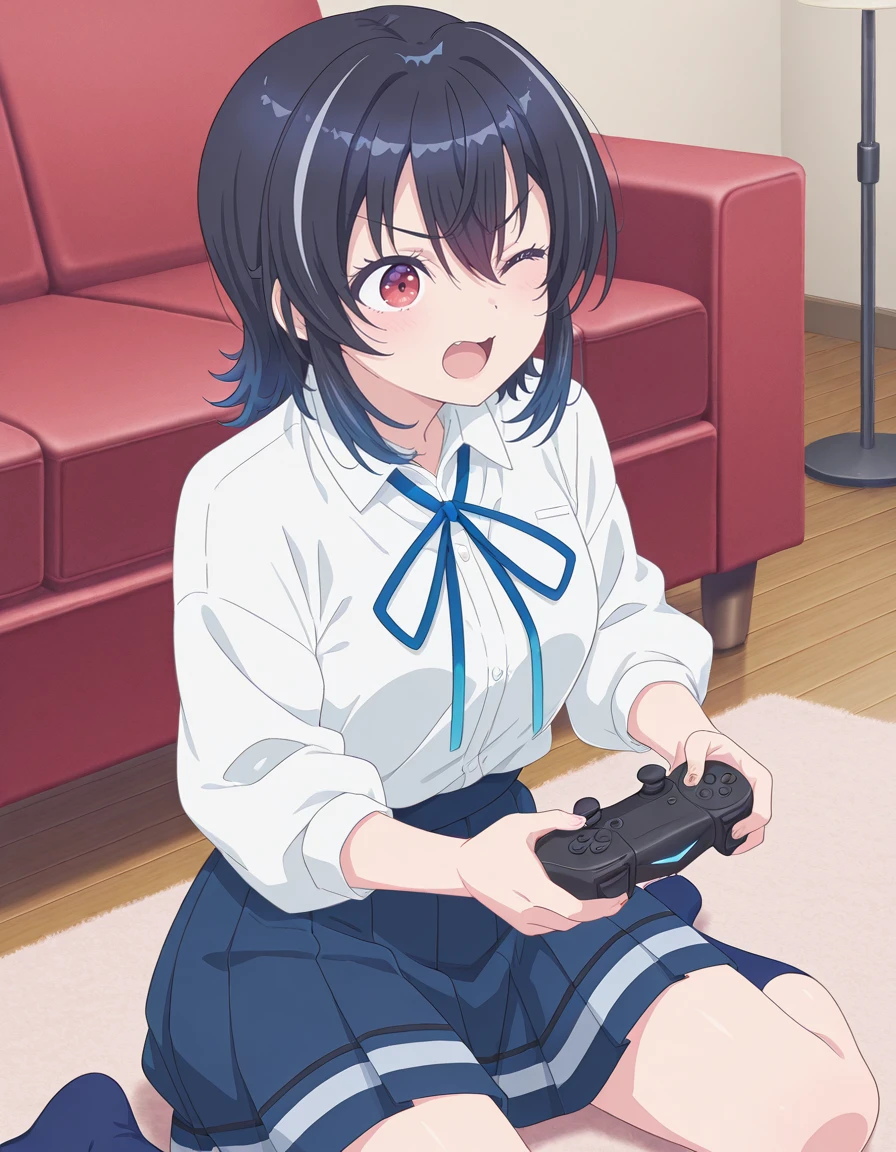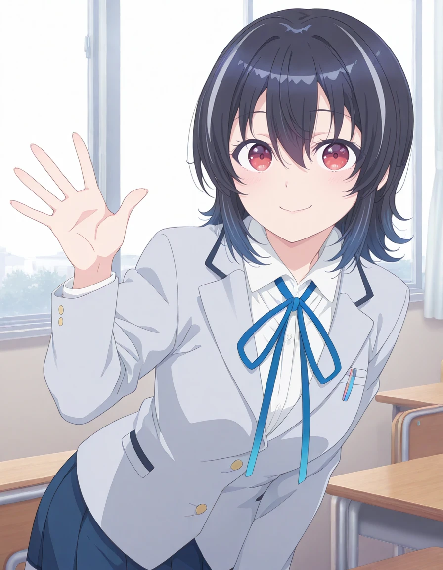<lora:umi_asanagi-class_de_2_banme_s1-ixl-anime-soralz:1>, umi asanagi (class de 2-banme), medium hair, black hair, streaked hair, multicolored hair, gradient hair, hair between eyes, red eyes