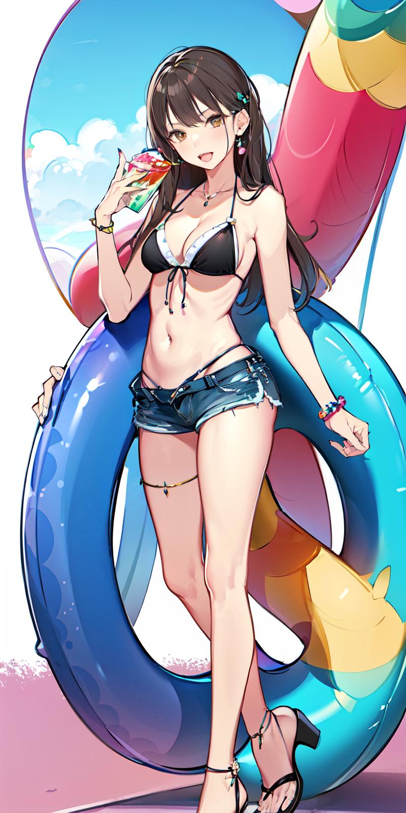 本模型旨在绘制纤细感的少女,在保持苗条身材的同时,又不失肉感,对于黑丝和足部的刻画也非常棒,建议使用权重在0.6~0.8之间,太高了会过拟合,JK OL 泳装都有很好的表现,建议竖版,图尽量长点,比例达到2:1都可以。关键词Slender girl ,记得高清重绘,重绘方式建议4x-Ultrasharp