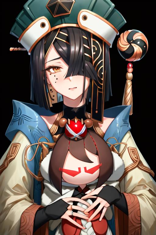 The trigger word is xu_fu_fgo, and the recommended tags are best quality, masterpiece, highres, solo, {xu_fu_fgo:1.15}, black_hair, hair_over_one_eye, mole, mole_under_eye, small_breasts, breasts, doll, hair_ornament, hat, blue_headwear, short_hair, hair_stick, character_doll, brown_eyes, tassel, straight_hair, medium_hair, hair_between_eyes, gem, bridal_gauntlets, upper_body.