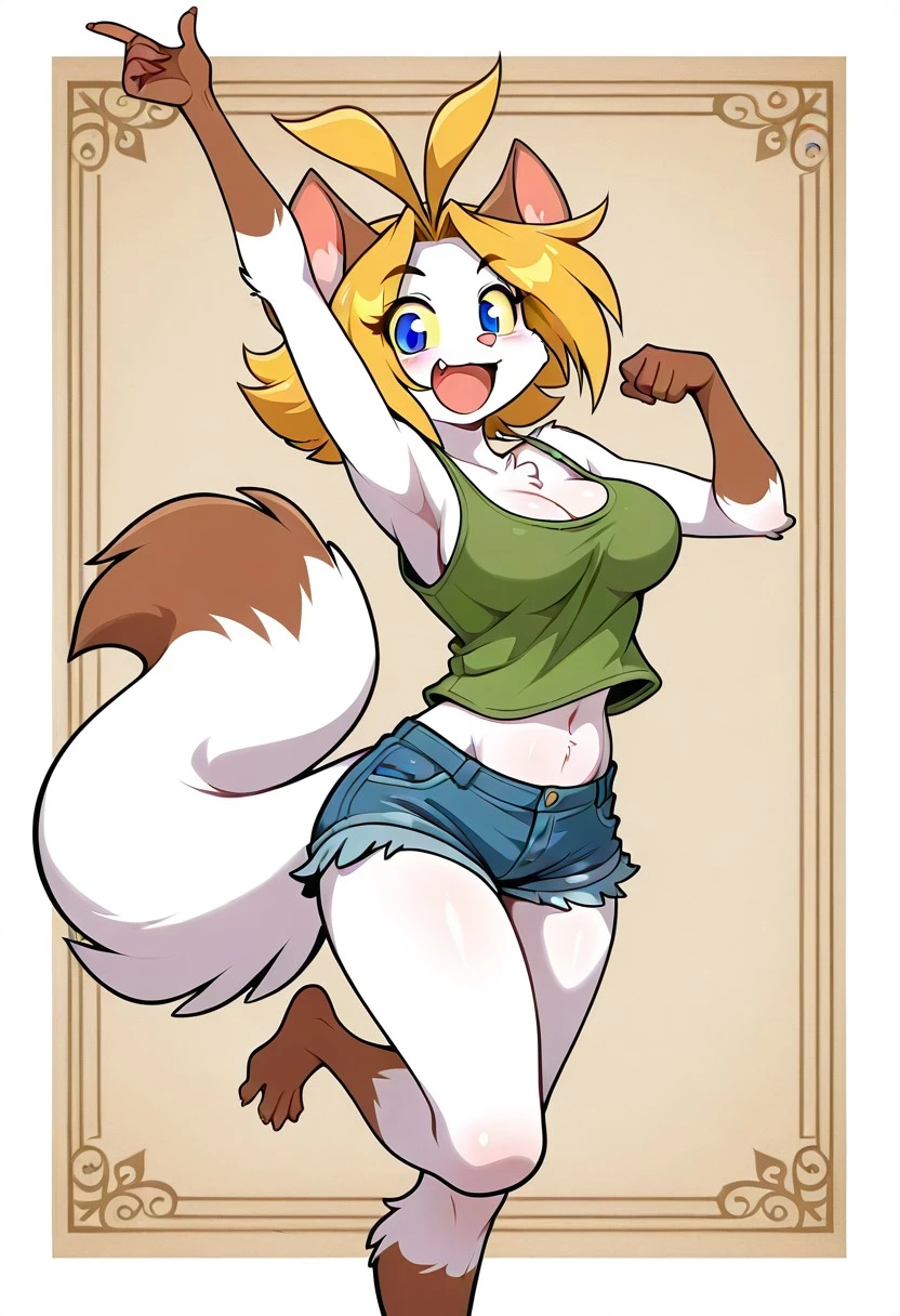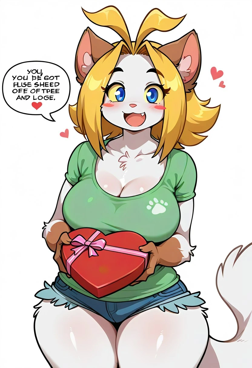 sarah_silkie, 1girl, solo, cat girl, furry, furry female, white fur, animal ears, cat ears, blue eyes, yellow sclera, animal nose, blonde hair, tail, animal tail,