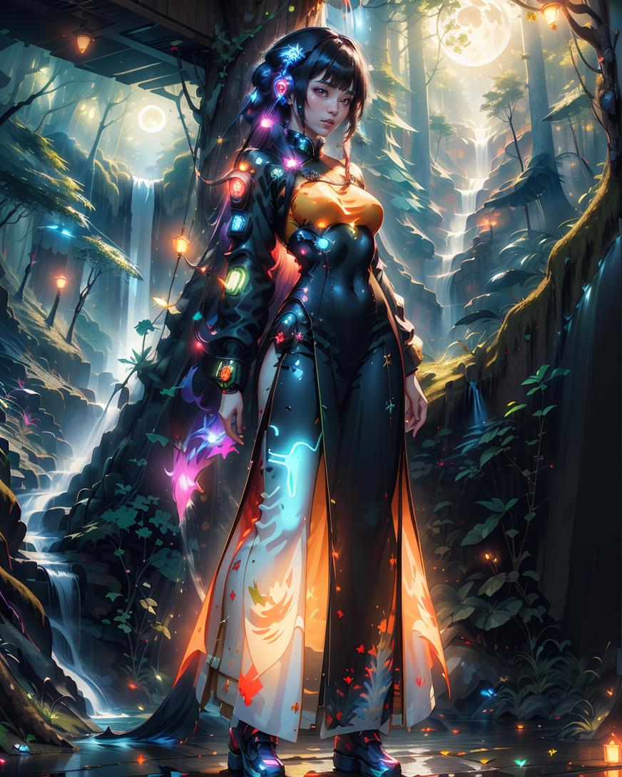 Áo Dài là trang phục truyền thống của người Việt Nam. Áo Dài vẫn được cải tiến qua các thời kỳ để đáp ứng được sự phong phú về kiểu dáng, giữ được tính thời thượng. Áo dài trong tương lai sẽ như thế nào nhỉ? Đây là mô phỏng sự giả tưởng của mình về 1 dạng áo dài trong thế giới tương lai, hy vọng bạn sẽ thích nó. Mình đã cố gắng xử lý việc đôi khi hình ảnh cho ra 1 cô gái không mặc quần, điều này khiến áo dài trở nên gần giống với sườn xám của người Trung Hoa. Trong những trường hợp này bạn có thể thử thêm "pants, long dress" vào prompt, và "bare thigh, thigh" vào negative prompt nhé!