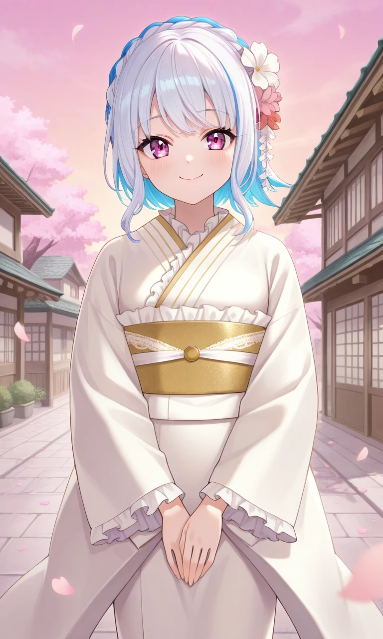 • 👘🤍White version : lize7th wht, short hair, crown braid, hair flower, white kimono, frilled kimono, yellow obi