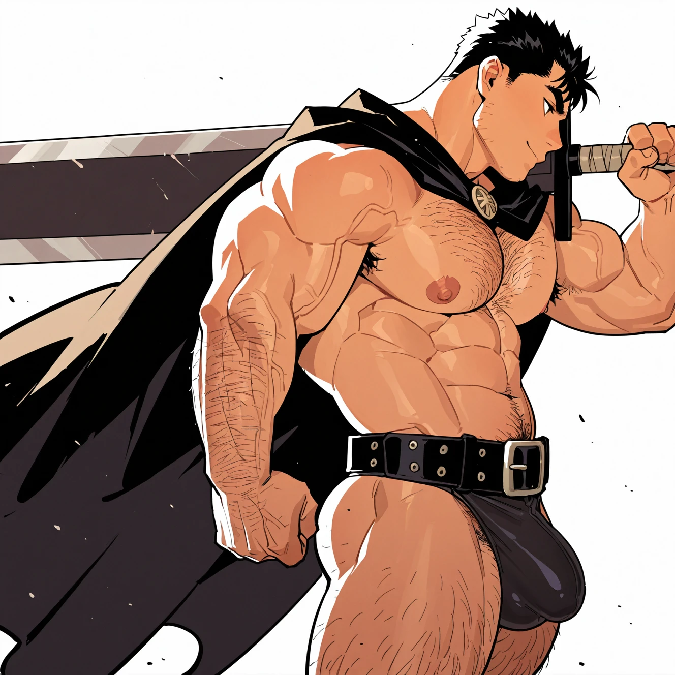 <lora:GUTS:1> guts, male focus, short hair, scar, 1boy, solo, black hair, muscular, scar on face, muscular male, scar on nose, spiked hair, bara, pectorals, large pectorals, thick eyebrows, weapon, sword