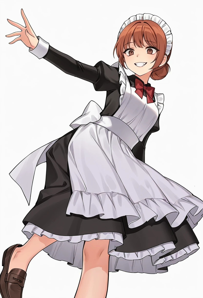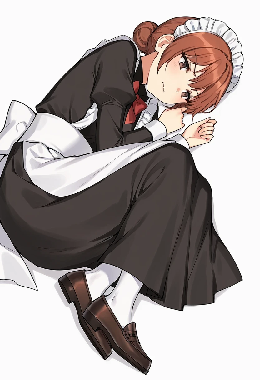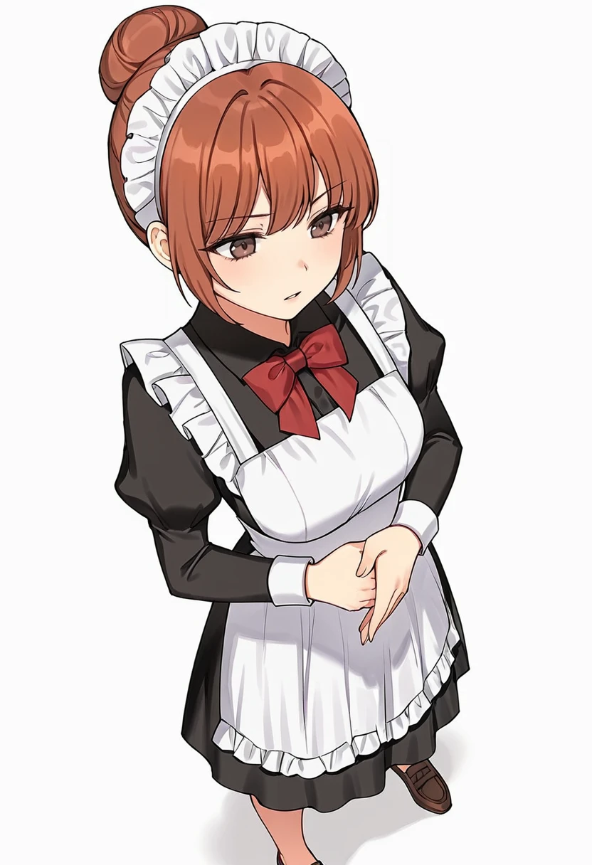 maid_cnr, 1girl,brown hair, brown eyes, single hair bun,👗Default Outfit