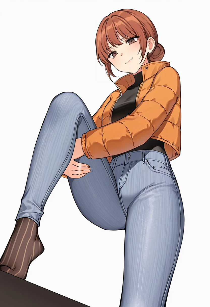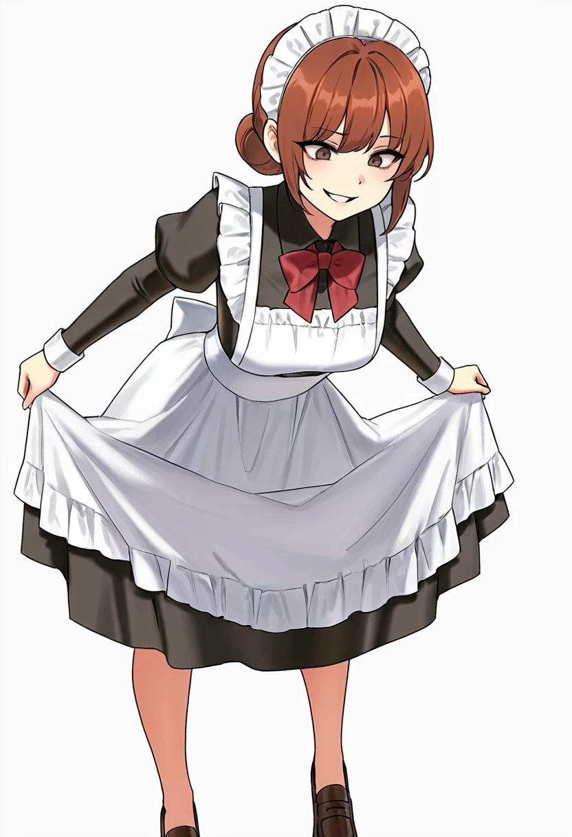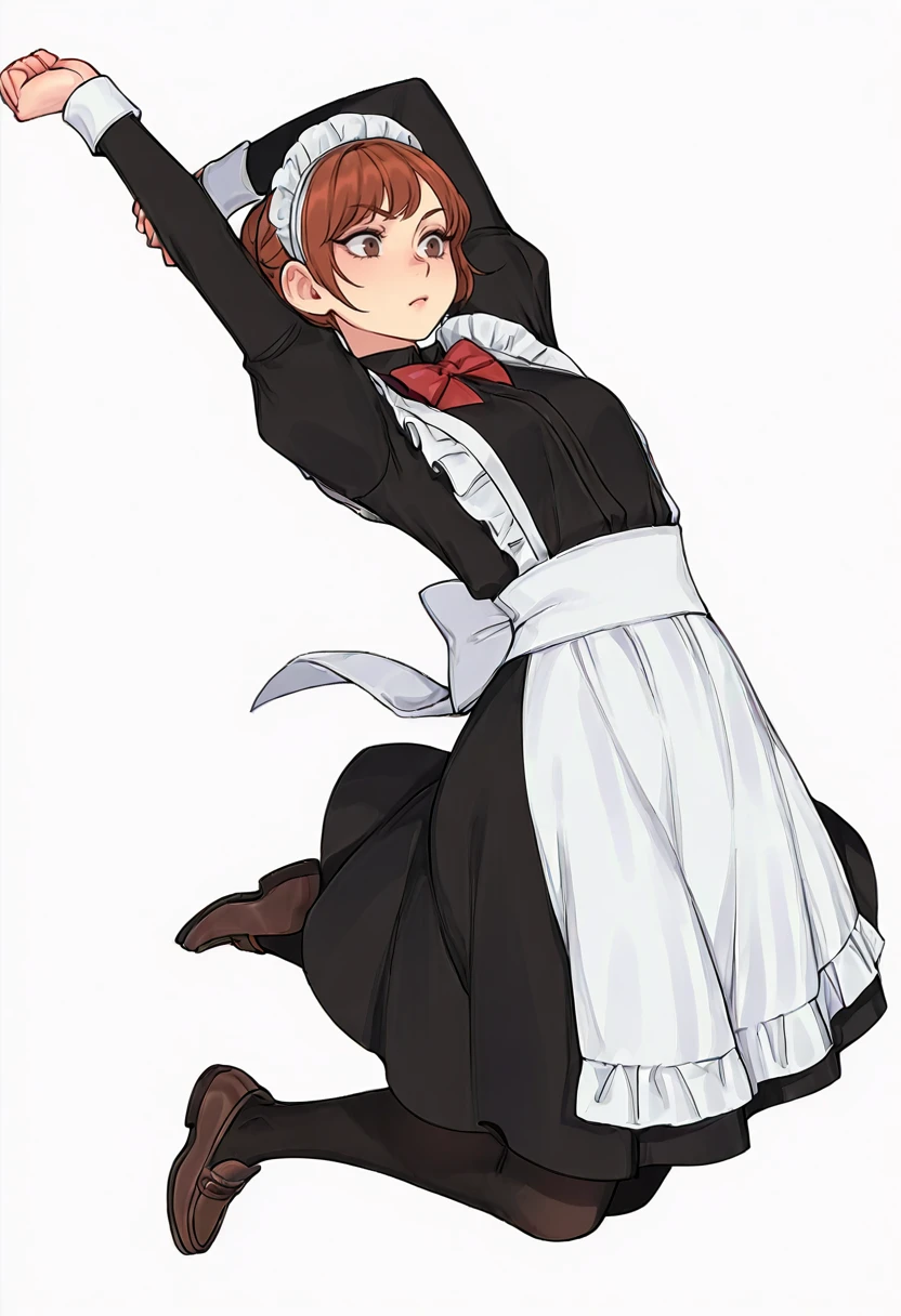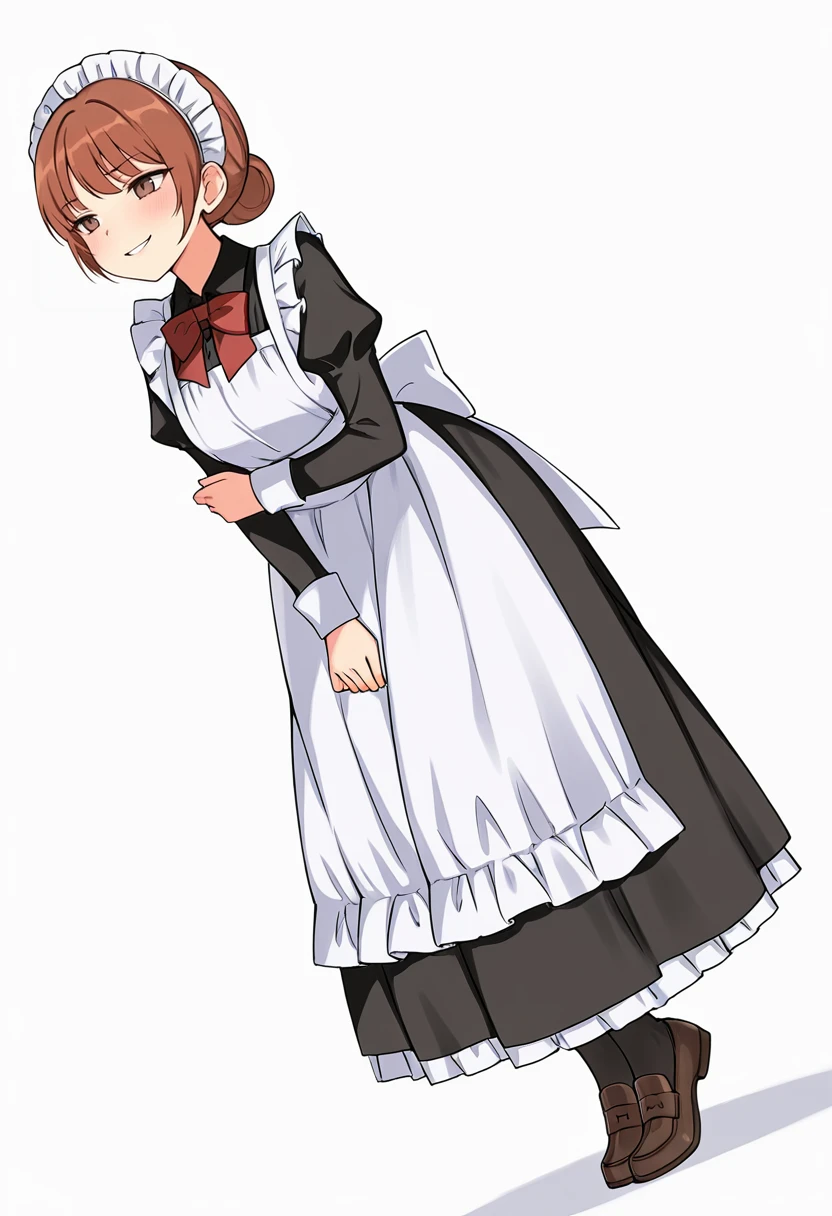 maid_cnr, 1girl,brown hair, brown eyes, single hair bun,👗Default Outfit