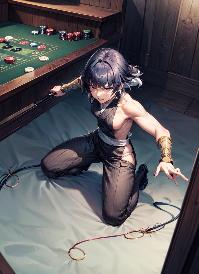 Default Outfit: japanese clothes, sideboob, hip vent, detached sleeves, bare shoulders