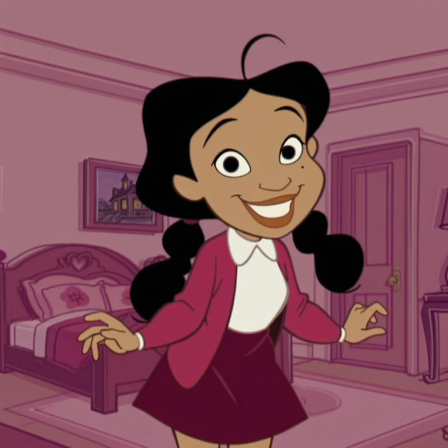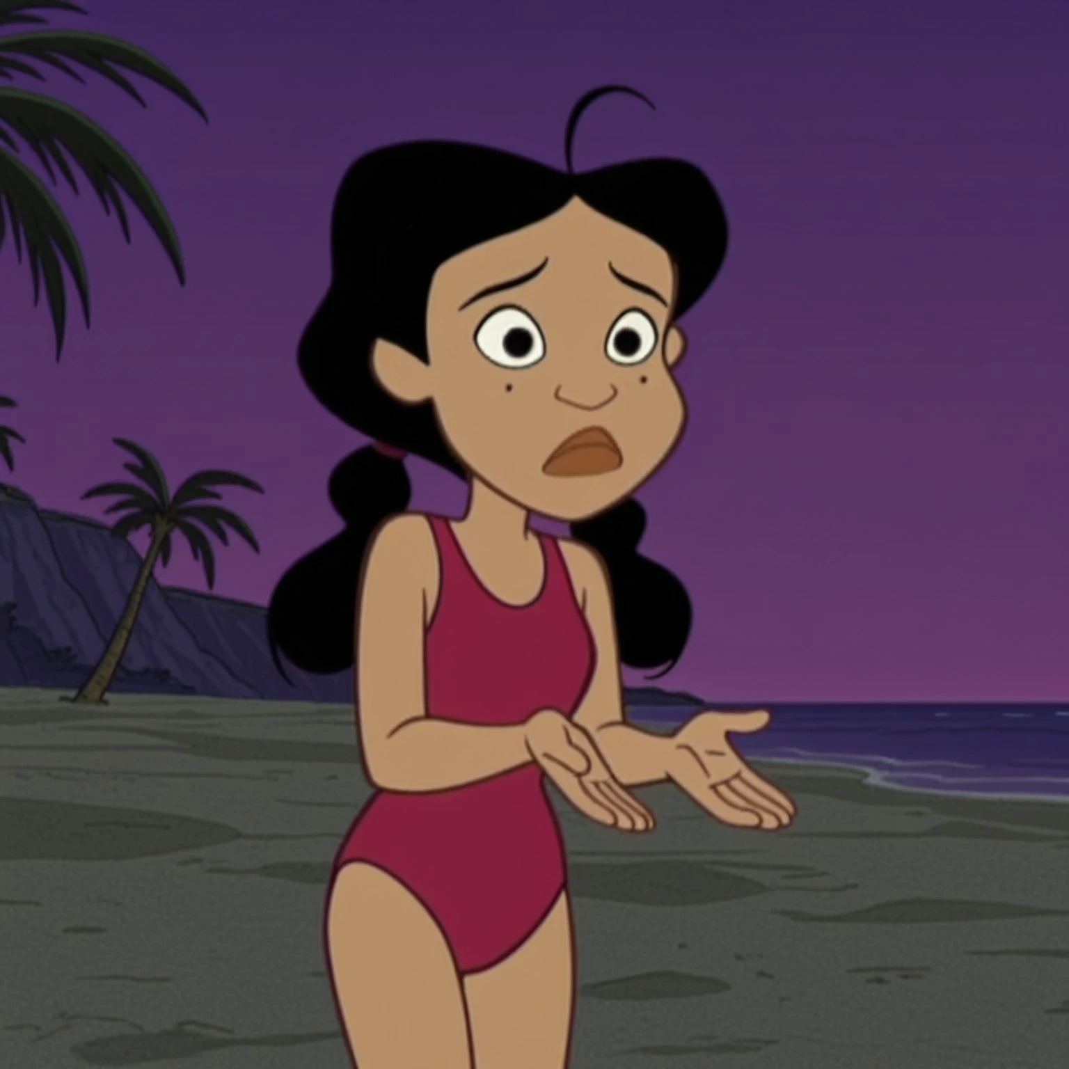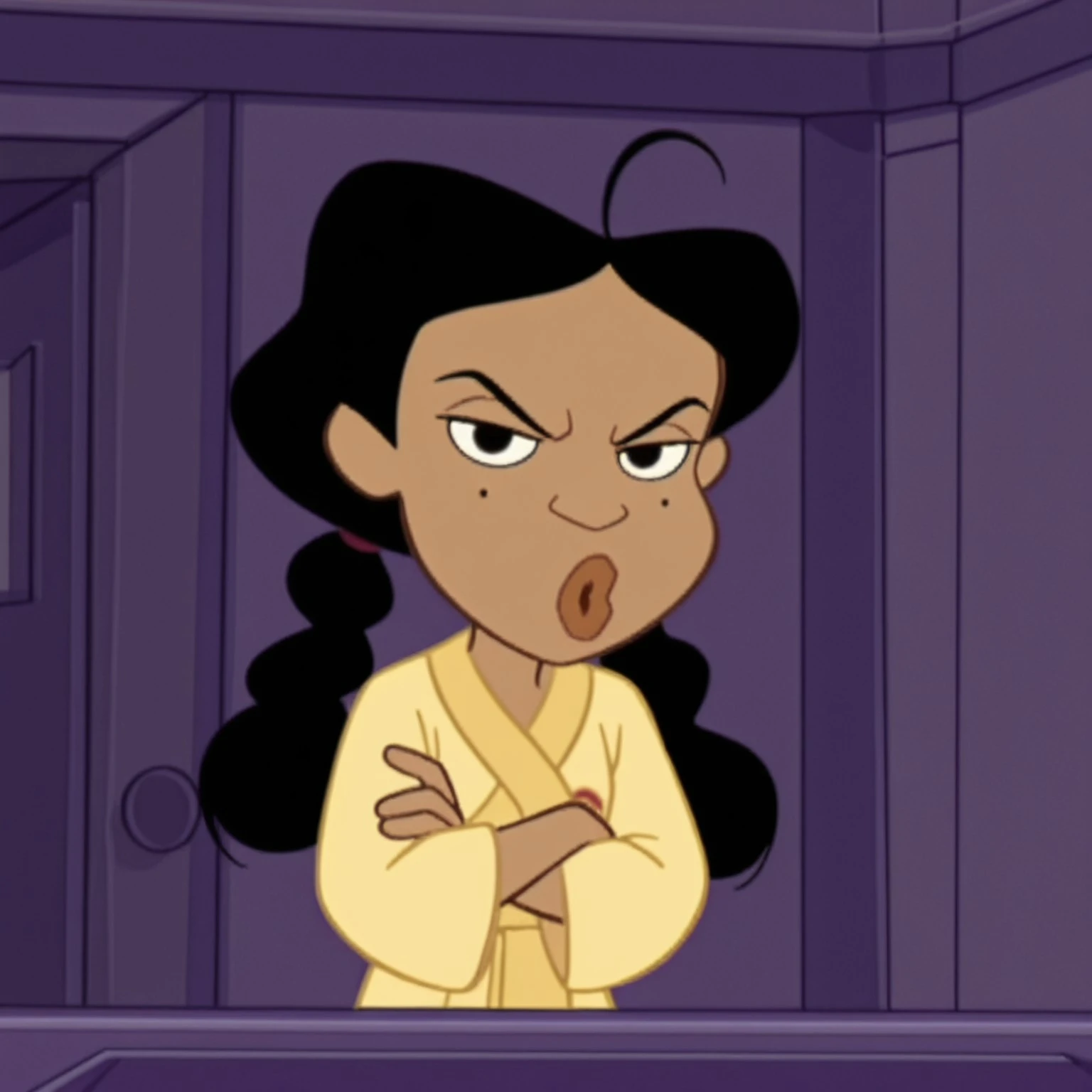 mole, mole under eye, black eyes, black hair, ahoge, low pigtails, lips, dark-skinned female,
