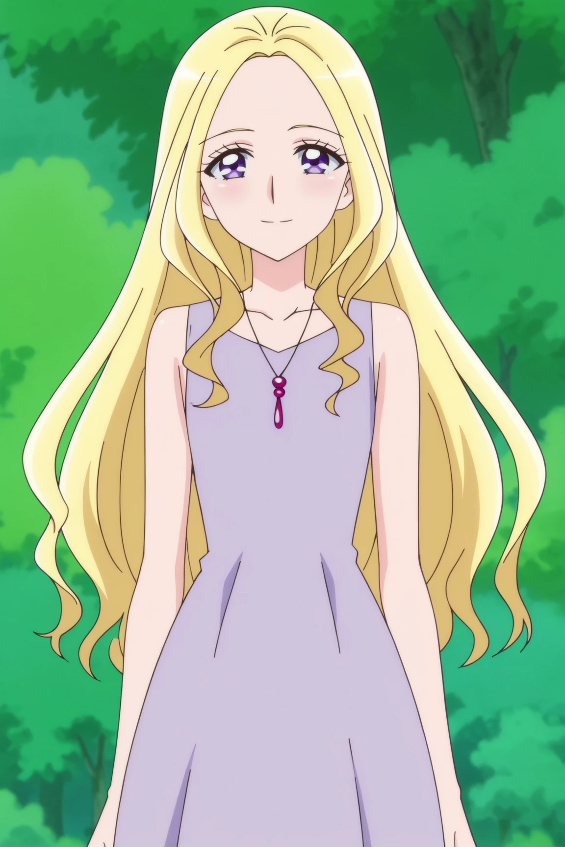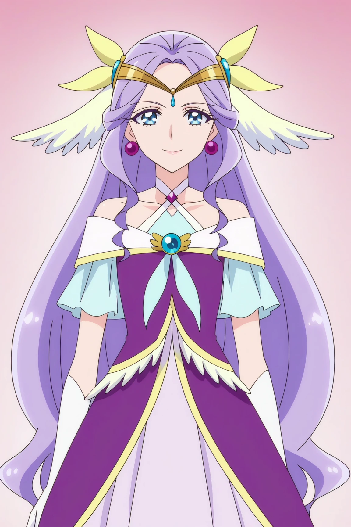 1girl, cure earth, healin' good precure, blue eyes, long hair, purple hair,outfit 1 (Straight blonde hair):