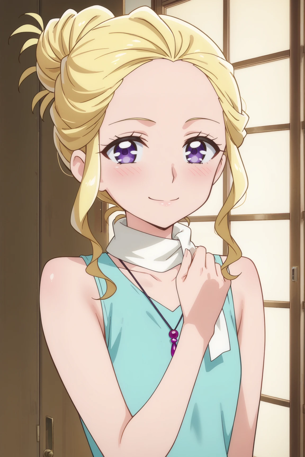 hair bun, collarbone, sleeveless, scarf, necklace,