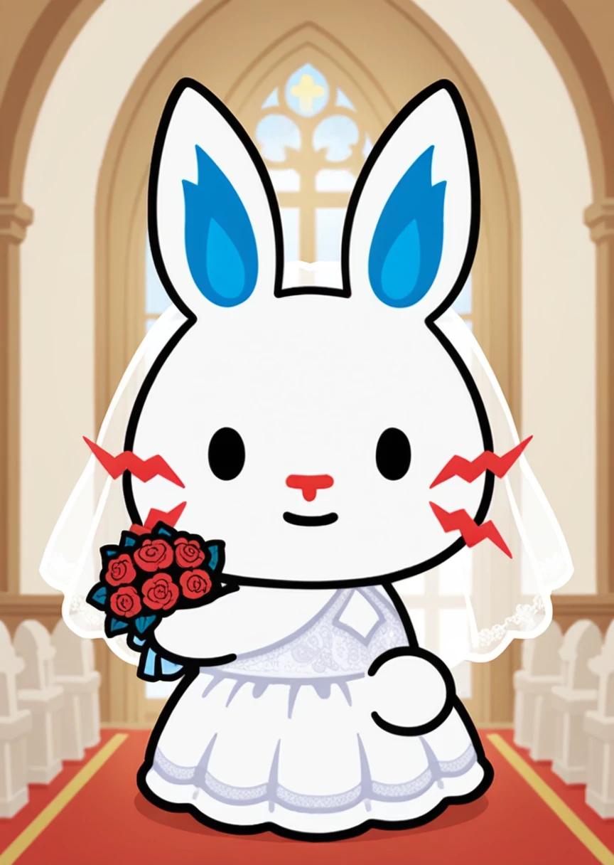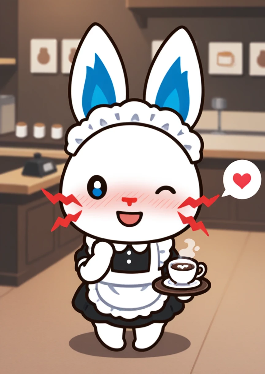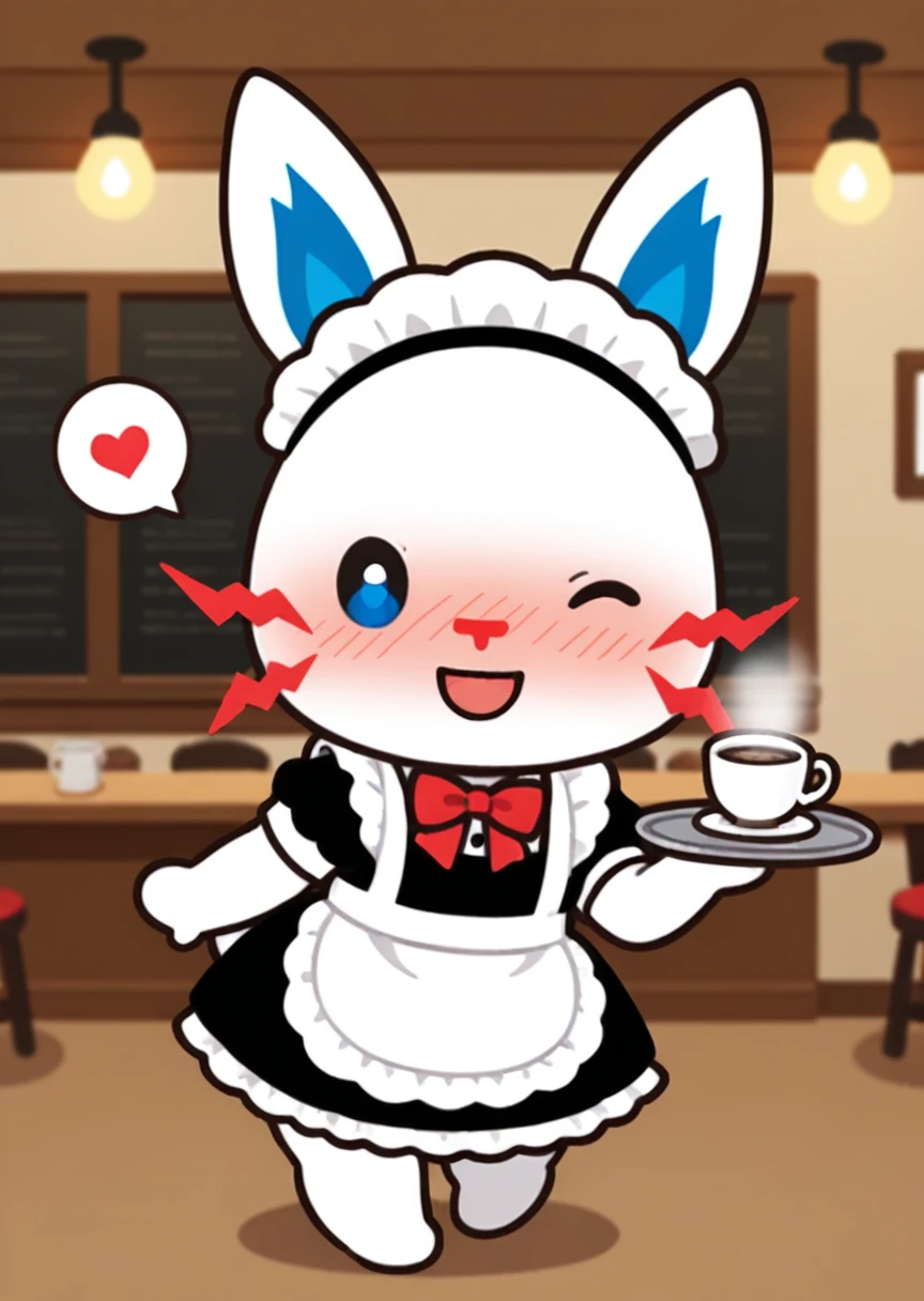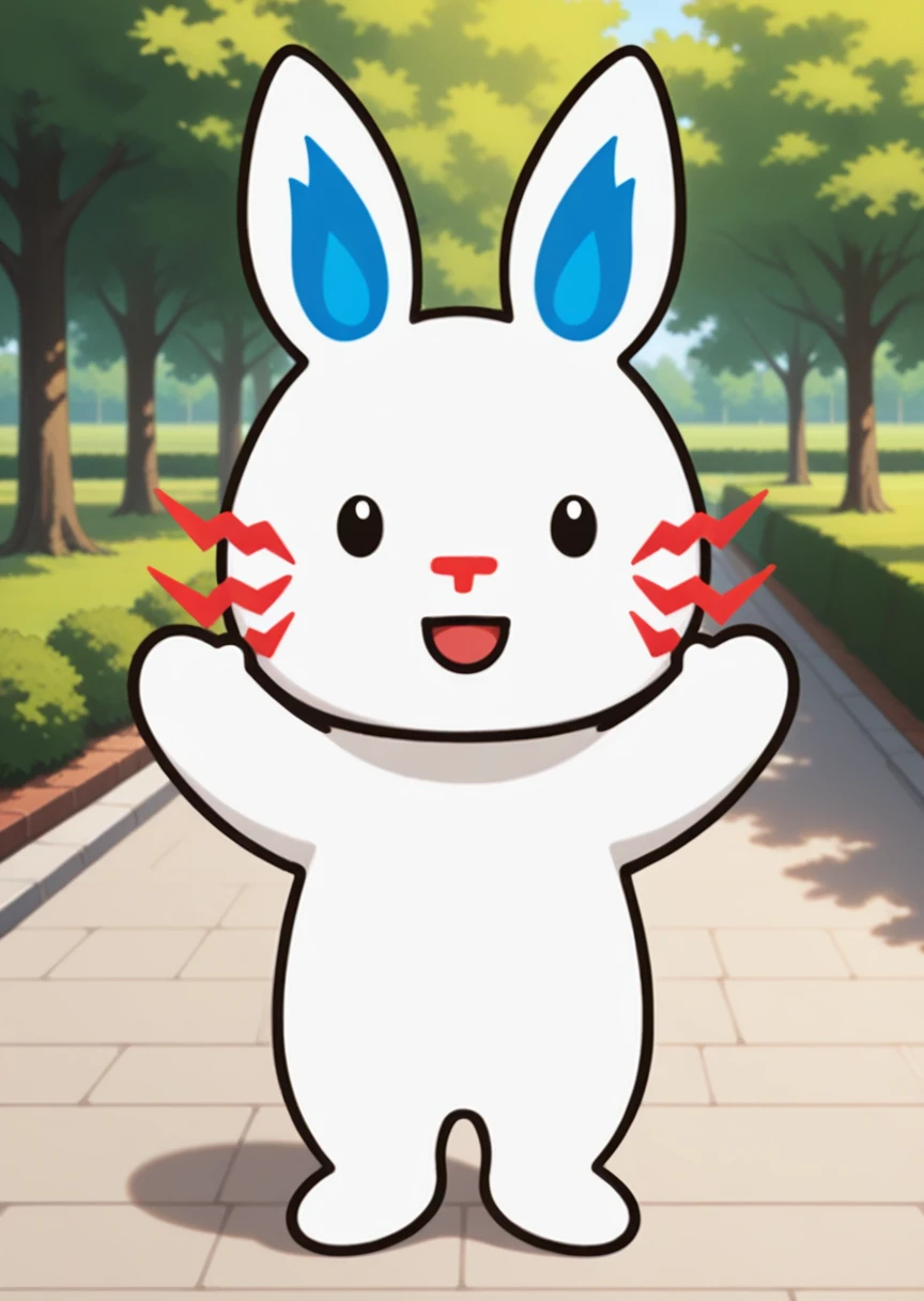 prompts: tepcon, furry, animal ears, black eyes, white fur, park, red whiskers, blue inner ears, dot eyes
